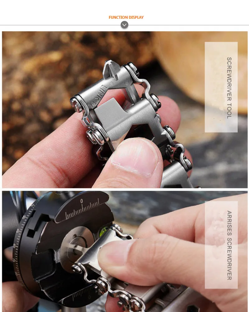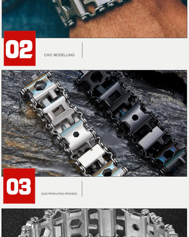[Мульти-Функция]-это Серебряный Мульти-Функция инструмент браслет 29-в-1 чрезвычайная ситуация вне дома Функция, включая различные торцевые ключи, шестигранные ключи, дюймовый стандарт, шестиугольных отверток, крест и крестовые отвертки, гаечные ключи для кислородного бака, выключатели из карбонизированного стекла, sim-карты, переходник для отвертки и штопор. Подходит для людей, которые нуждаются в большом количестве инструментов, но не хотят носить их с собой. [Материал из нержавеющей стали]-изготовлен из высококачественной нержавеющей стали, проходит Строгие производственные испытания и очень прочен. В то же время, после полировки браслет имеет гладкое ощущение. Это обязательный браслет протектора для мужчин. Вы можете комбинировать ваши любимые инструменты для удовлетворения различных потребностей приключений. [Идеальный инструмент]-это идеальный инструмент для кемпинга, пеших прогулок, парусного спорта, велоспорта и других видов активного отдыха. Очень подходит в качестве особого праздничного подарка на Рождество, день рождения или отца, партнера или друга. В то же время стильный и современный внешний вид делает вас великолепным. [Наденьте ремешок]-всякий раз, когда вам нужны аварийные инструменты, пожалуйста, носите этот многофункциональный браслет на запястье. Вам может потребоваться удалить ненужные инструменты из браслета, чтобы соответствовать вашему запястью. [100% обслуживание]-если вы не уверены в качестве продукции или у вас есть какие-либо другие вопросы, вы можете отправить нам электронное письмо, мы будем рады решить проблему для вас. Если вы не удовлетворены товаром или не удовлетворены, вы можете связаться с нами, и мы дадим вам удовлетворительный ответ.