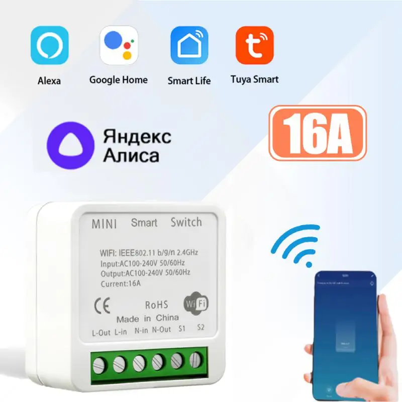 Умный мини-выключатель Tuya, 16 А, поддержка двухстороннего управления таймером, беспроводные переключатели, совместим с Alexa Google, автоматизация умного дома