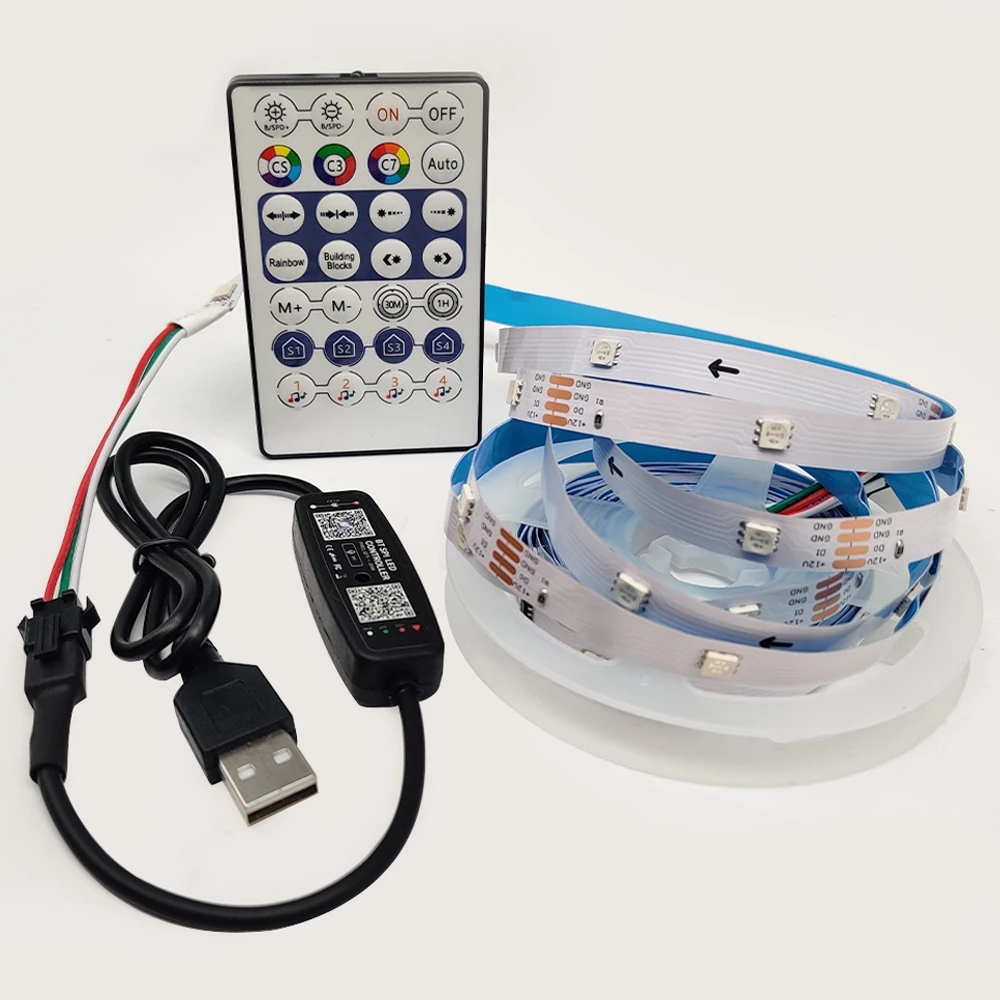 Светодиодная лента WS2812B с беспроводным управлением, гибкая лампа с поддержкой Bluetooth и RF, 1-30 м, для праздников, домашнего декора