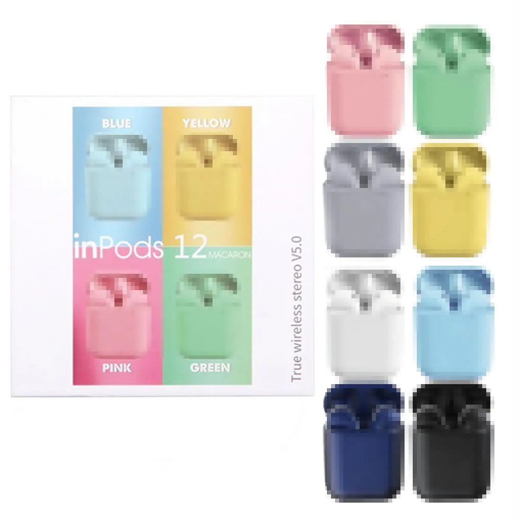 Беспроводные наушники Inpods 12 TWS, наушники Bluetooth 5,0, наушники из матового материала, стереонаушники Super Bass с полипропиленовым чехлом