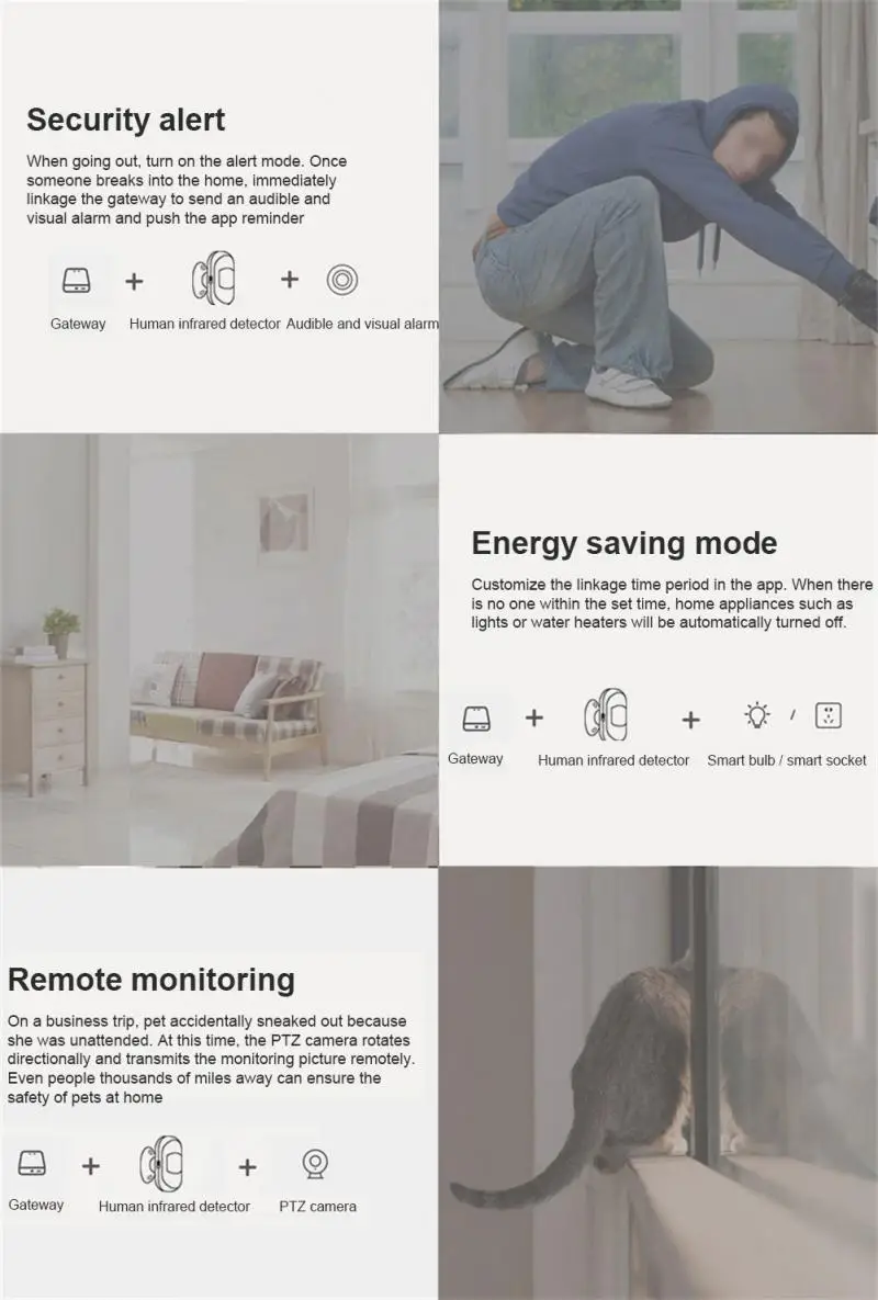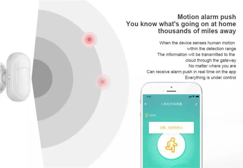 Когда устройство определяет движение человека в диапазоне обнаружения, оно будет передавать информацию в облако через шлюз независимо от того, где вы находитесь, вы можете получить сигнал тревоги в режиме реального времени в приложении, И вы можете осваивать все
