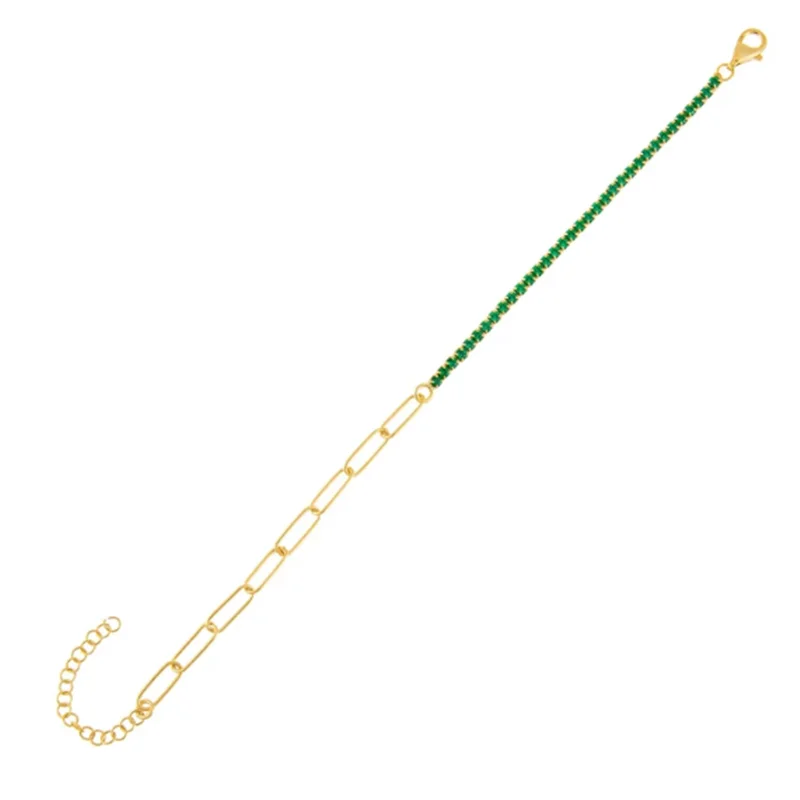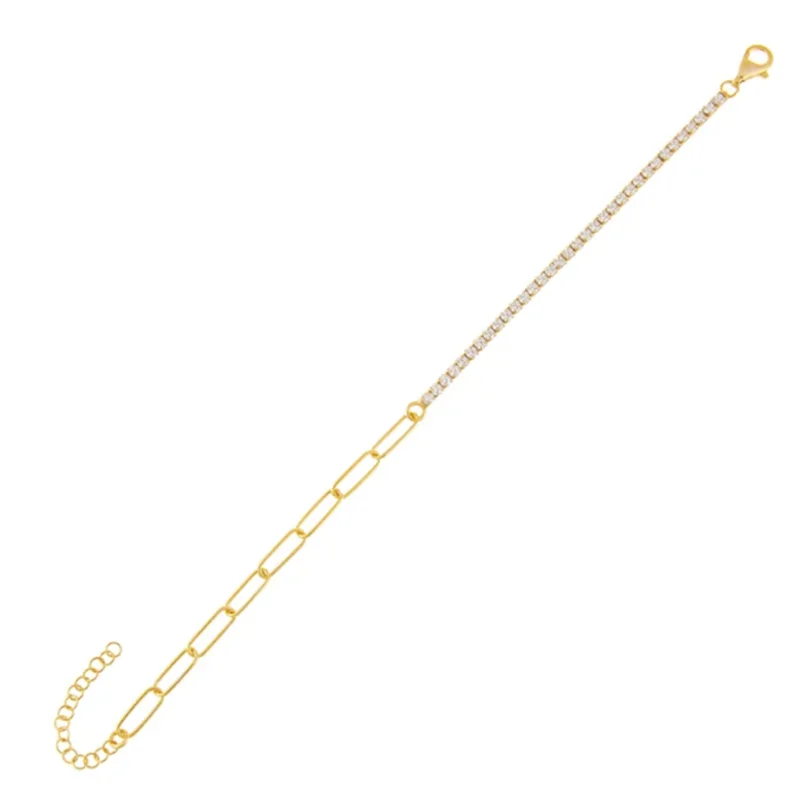 Женский теннисный браслет с фианитами и цепочкой в коробке