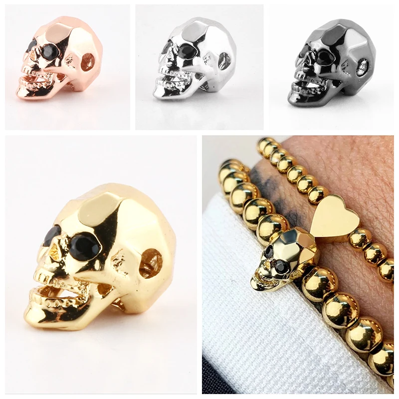 Бусины в виде черепа для изготовления ювелирных изделий, микро проложить Медь CZ Шарм рукоделие бусины золотые аксессуары diy разделитель браслета бусины подвески