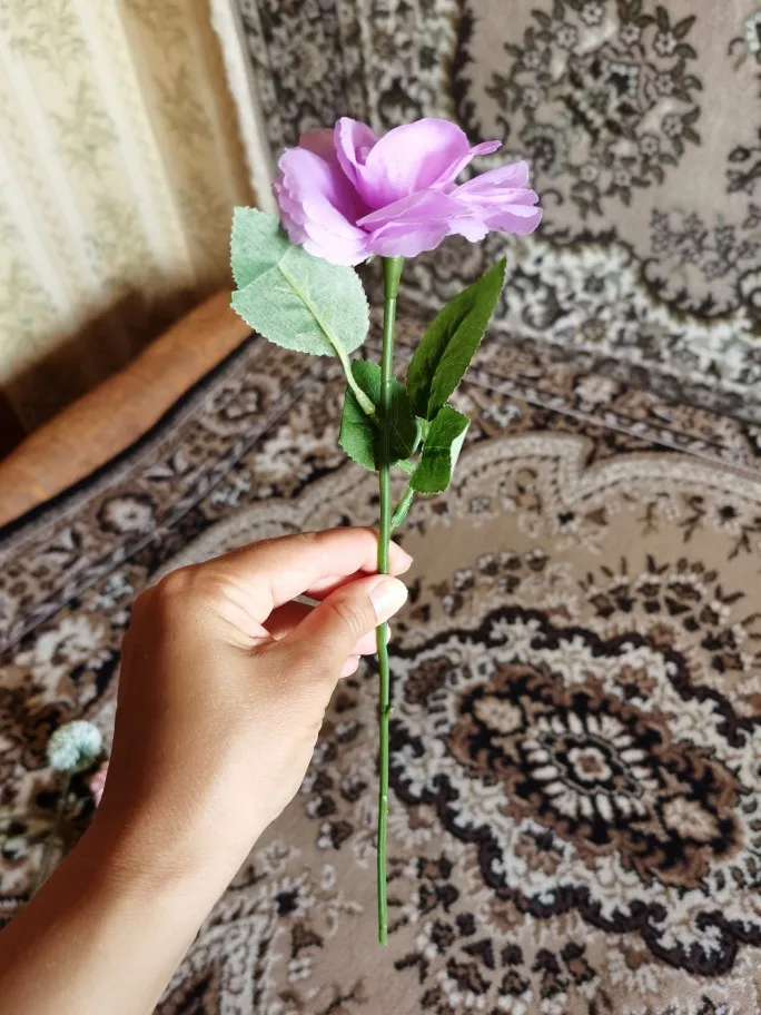 Полученный товар понравился, соответствует описанию и фотографиям продавца. Продавец отправил товар быстро. Посылка отслеживалась, доставка заняла 1 месяц (РФ УФО) в магазин "Пятерочка". Красивые цветы, выполнены качественно, достаточно реалистичные. Цвет соответствует заказанному. Рекомендую товар. Спасибо продавцу.