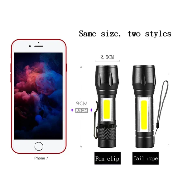 Мини XPE + COB светодиодный фонарик, водонепроницаемый ручной такти...