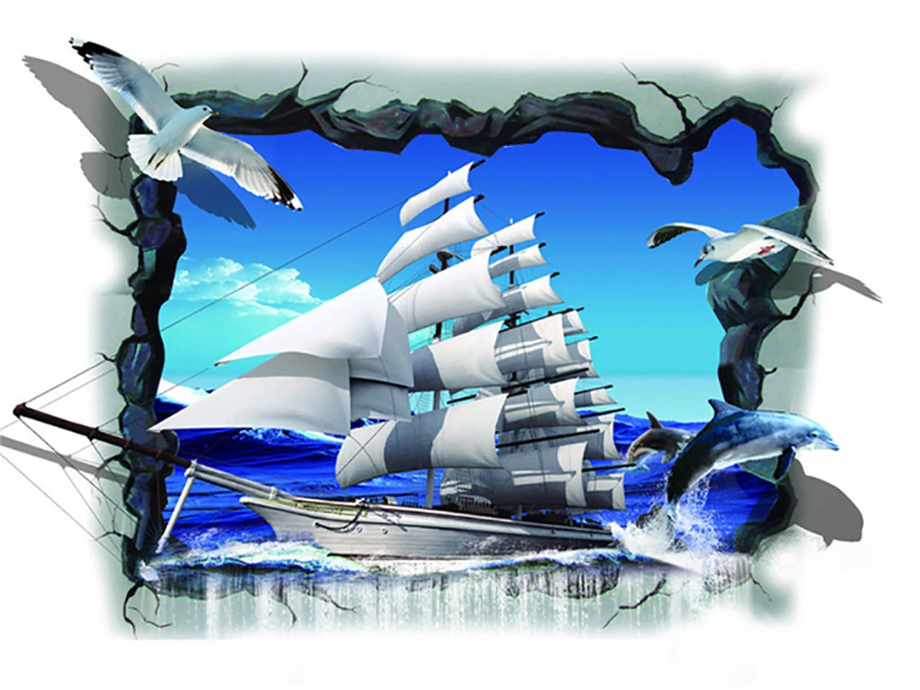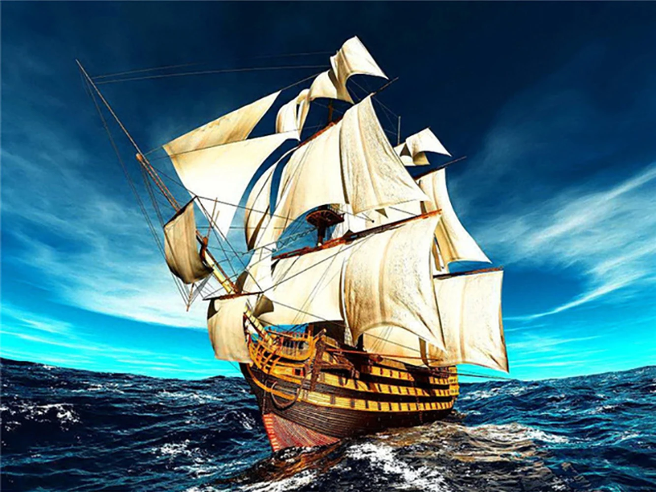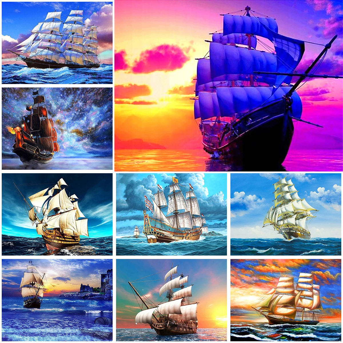Pintura de diamante 5D, joyier de botaje, barco de paisaje, bordado...