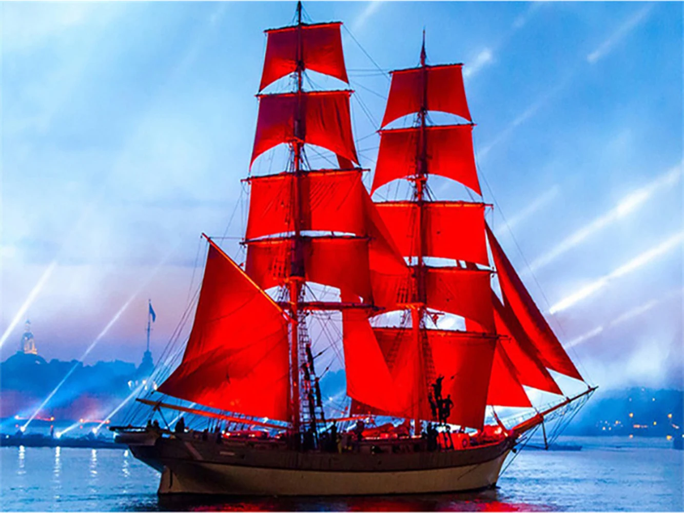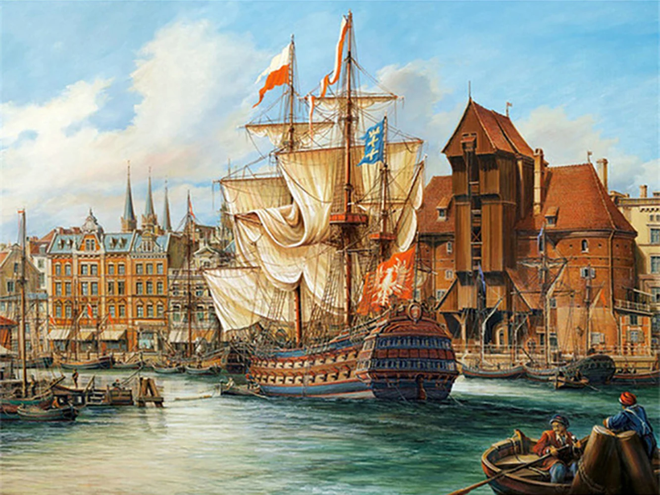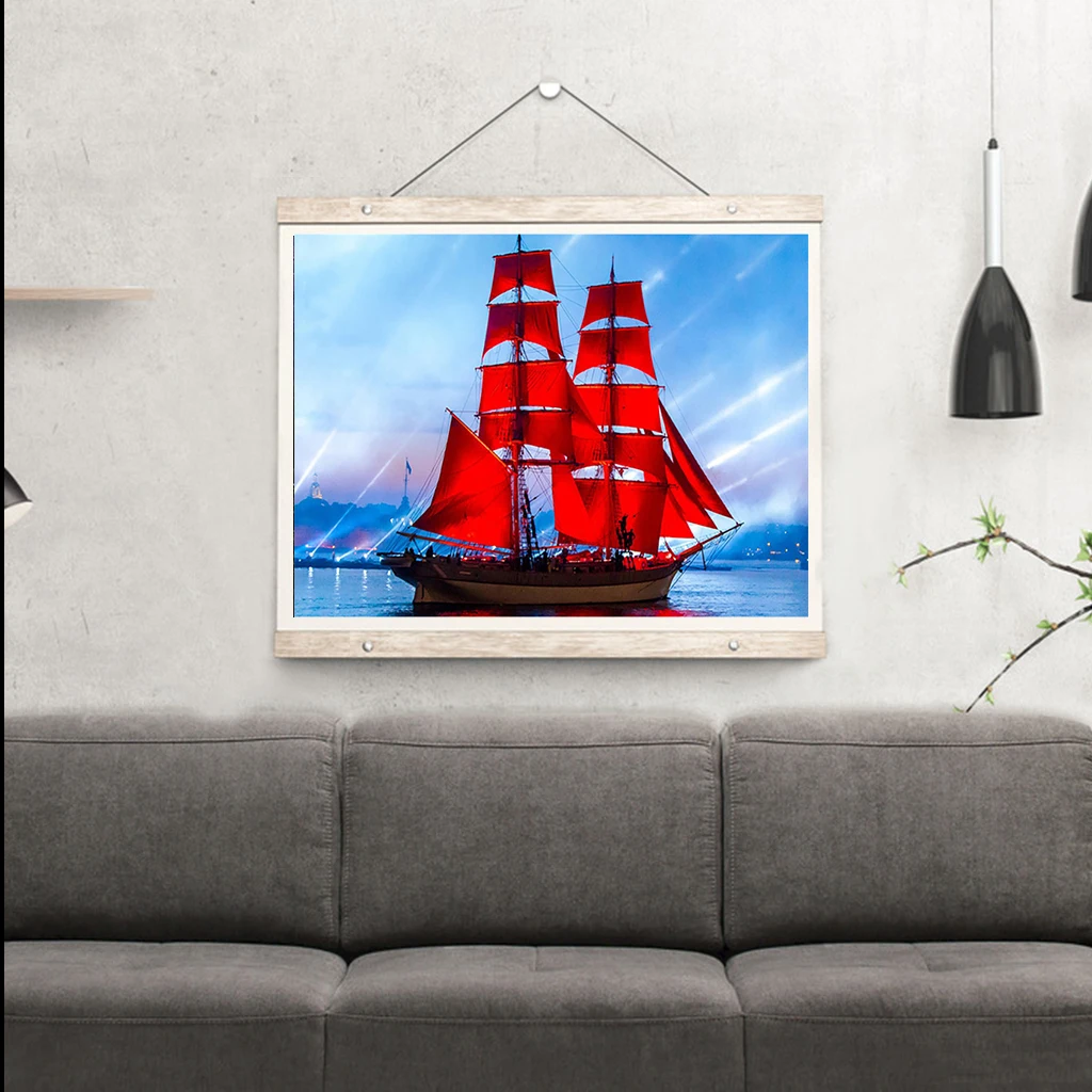 Pintura de diamante 5D, joyier de botaje, barco de paisaje, bordado...