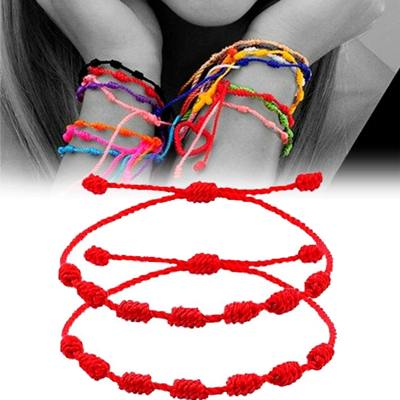 Браслет ручной работы с 7 узлами, 20 шт.лот, красный браслет-нить д...