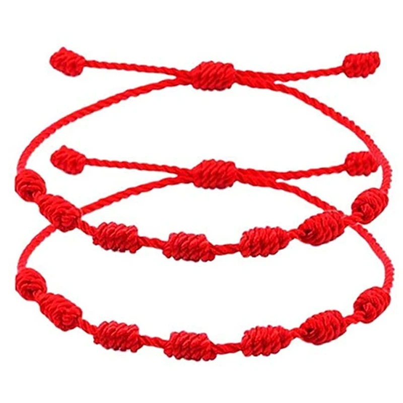 Модный красный браслет ручной работы с 7 узлами для защиты, амулет ...