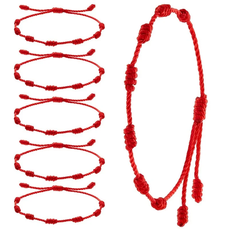 6 шт.компл. браслет ручной работы с 7 узлами, красный браслет на шн...