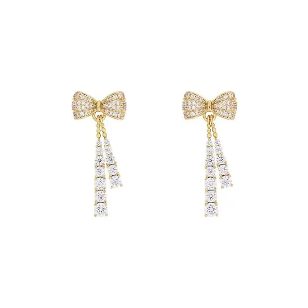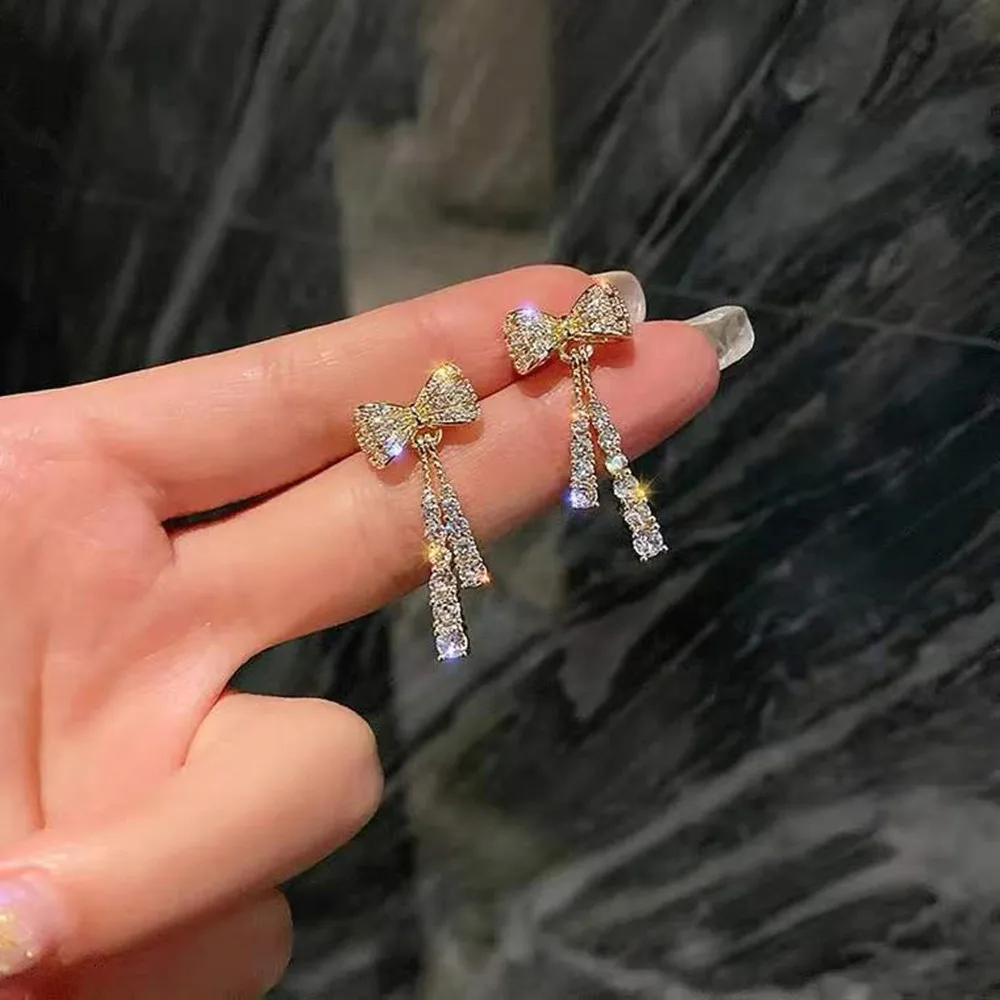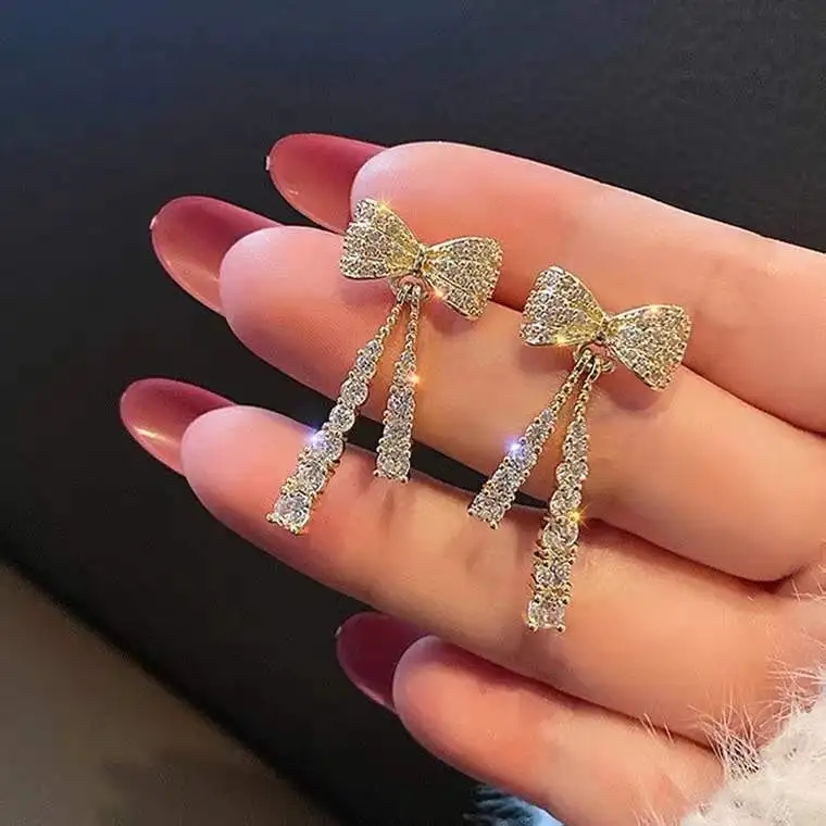 Новинка 2022, длинные серьги Стразы с бантом, корейские модные темпераментные индивидуальные серьги, ювелирные изделия для вечерние Ринок, изысканные подарки