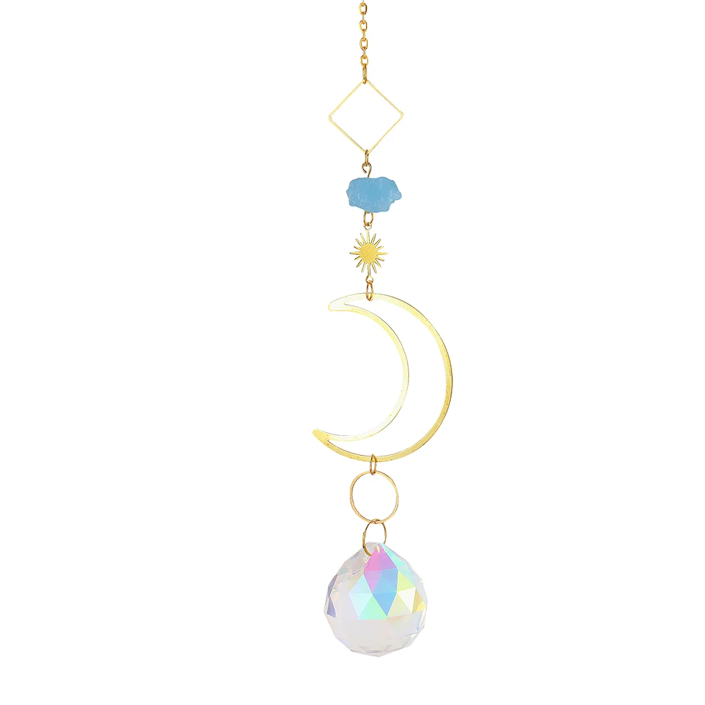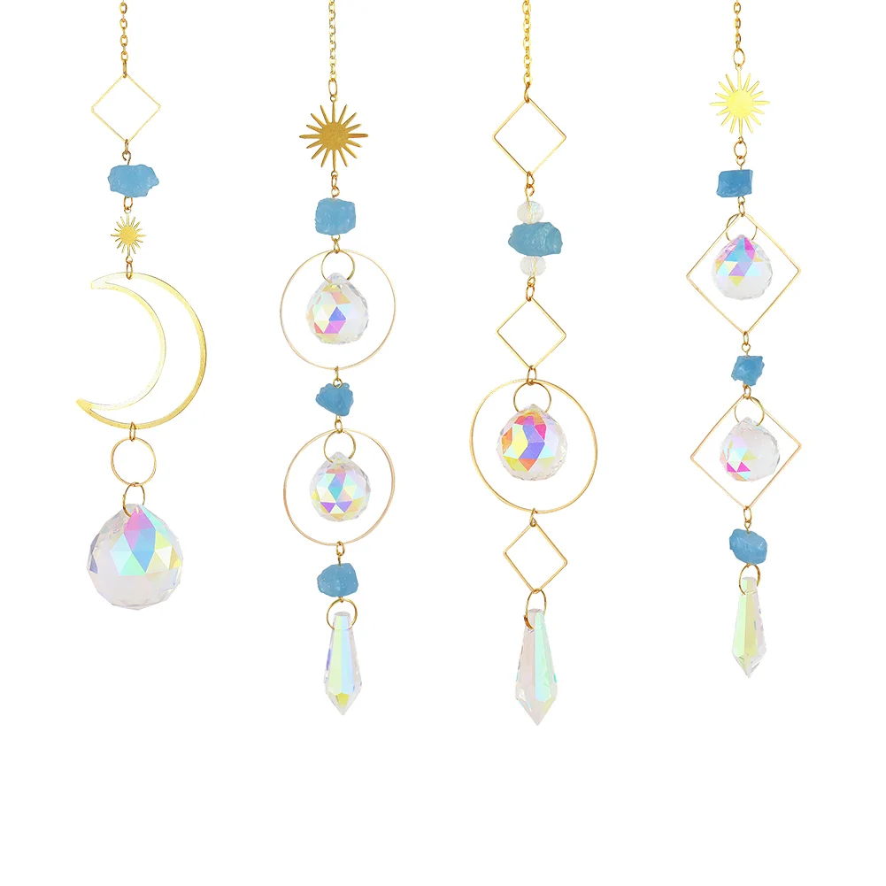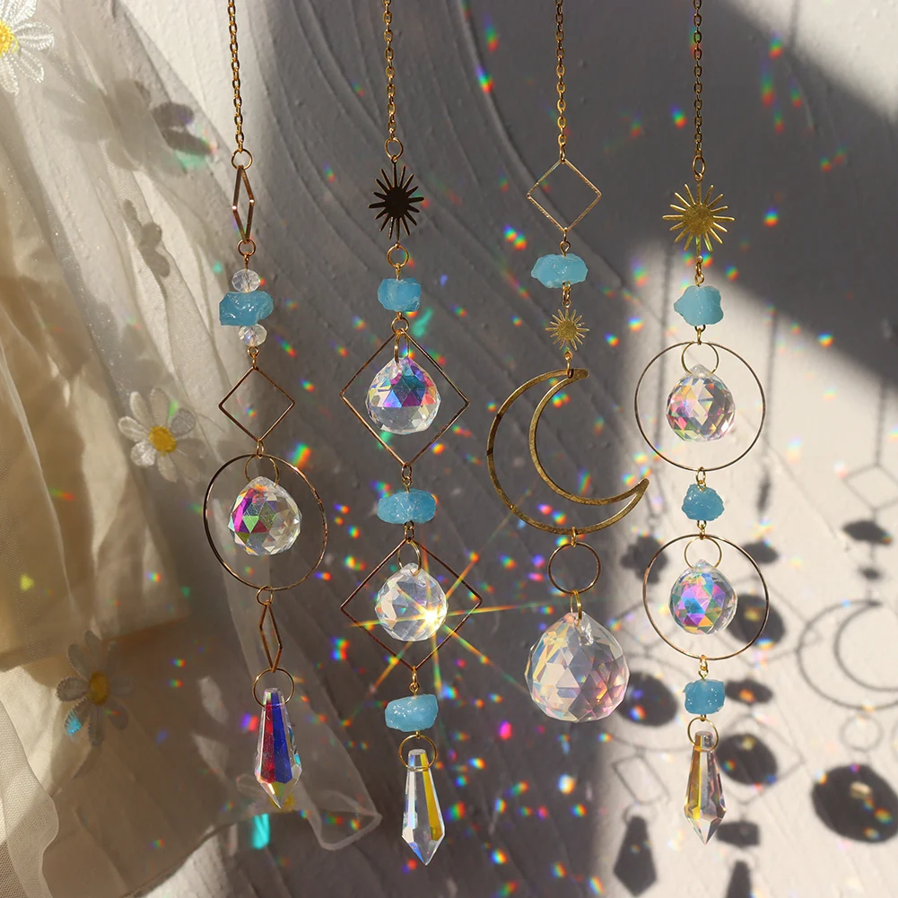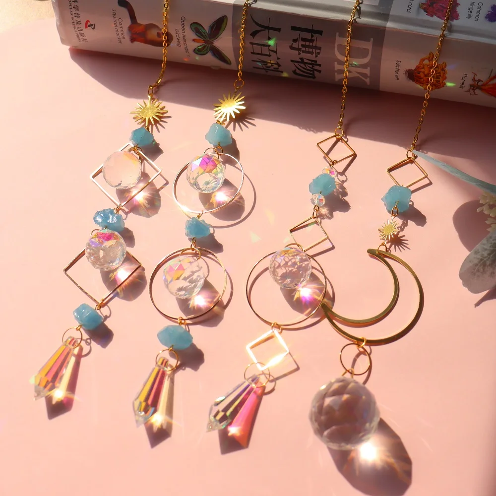 Хрустальные ветряные кулоны, украшения из металла, солнце, луна, поделки для окна, рождественская елка, открытый сад, красочные бусы, подвесной кулон, ремесло для украшения дома, спальни, праздничные вечерние подарки