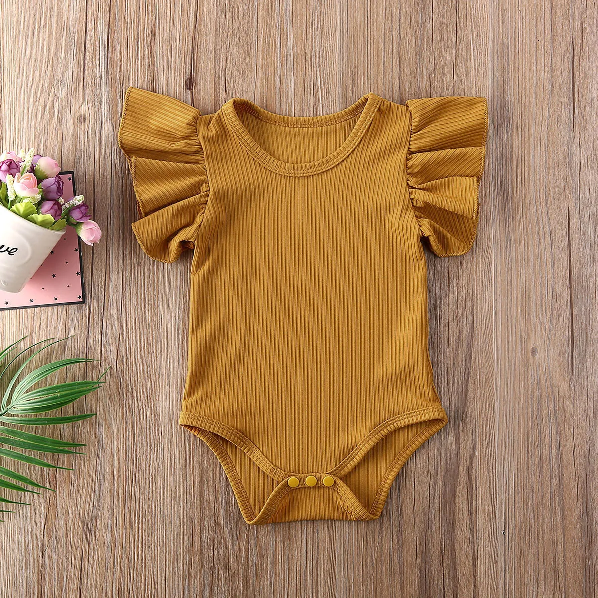 Летнее однотонное хлопковое боди для новорожденных девочек, комбине...