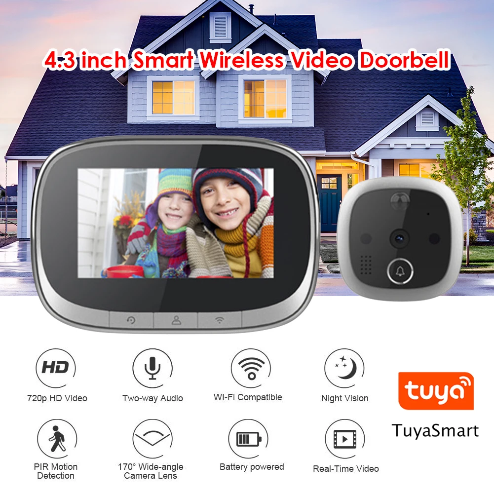 Умный беспроводной домофон W2 Tuya, 4,3 дюйма, видеодомофон, дверно...