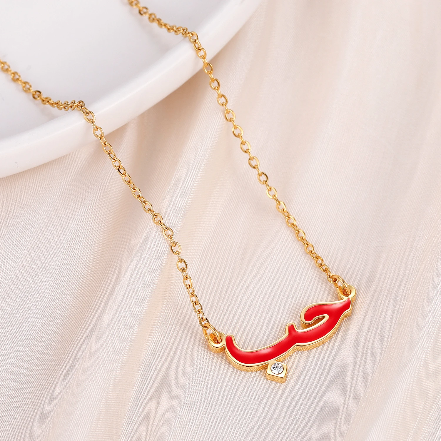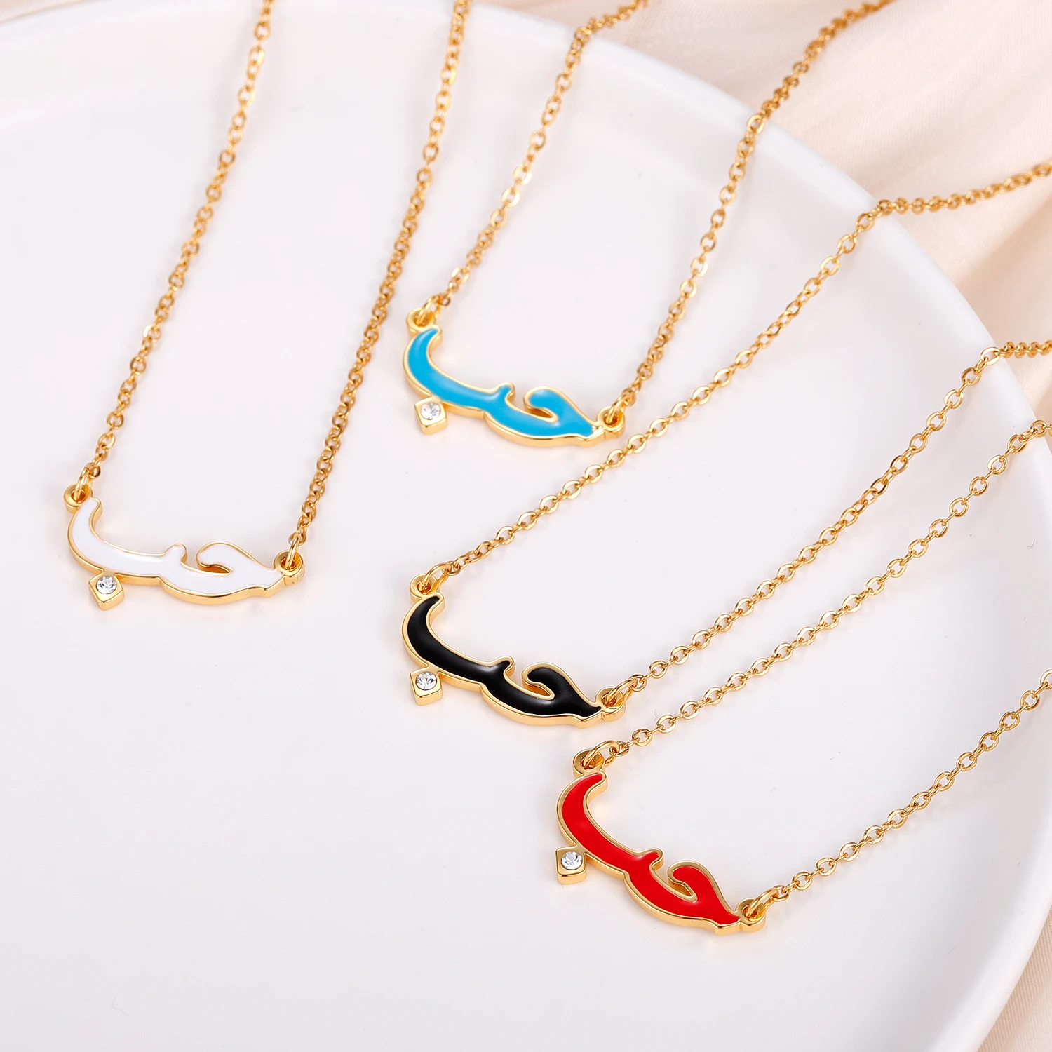 Qitian эмалевые ожерелья с арабским именем ювелирные изделия на заказ красочное ожерелье из нержавеющей стали с подвеской персонализированные ювелирные изделия с именем DropOil