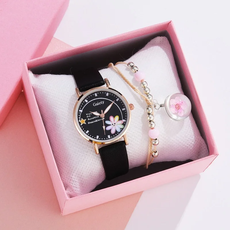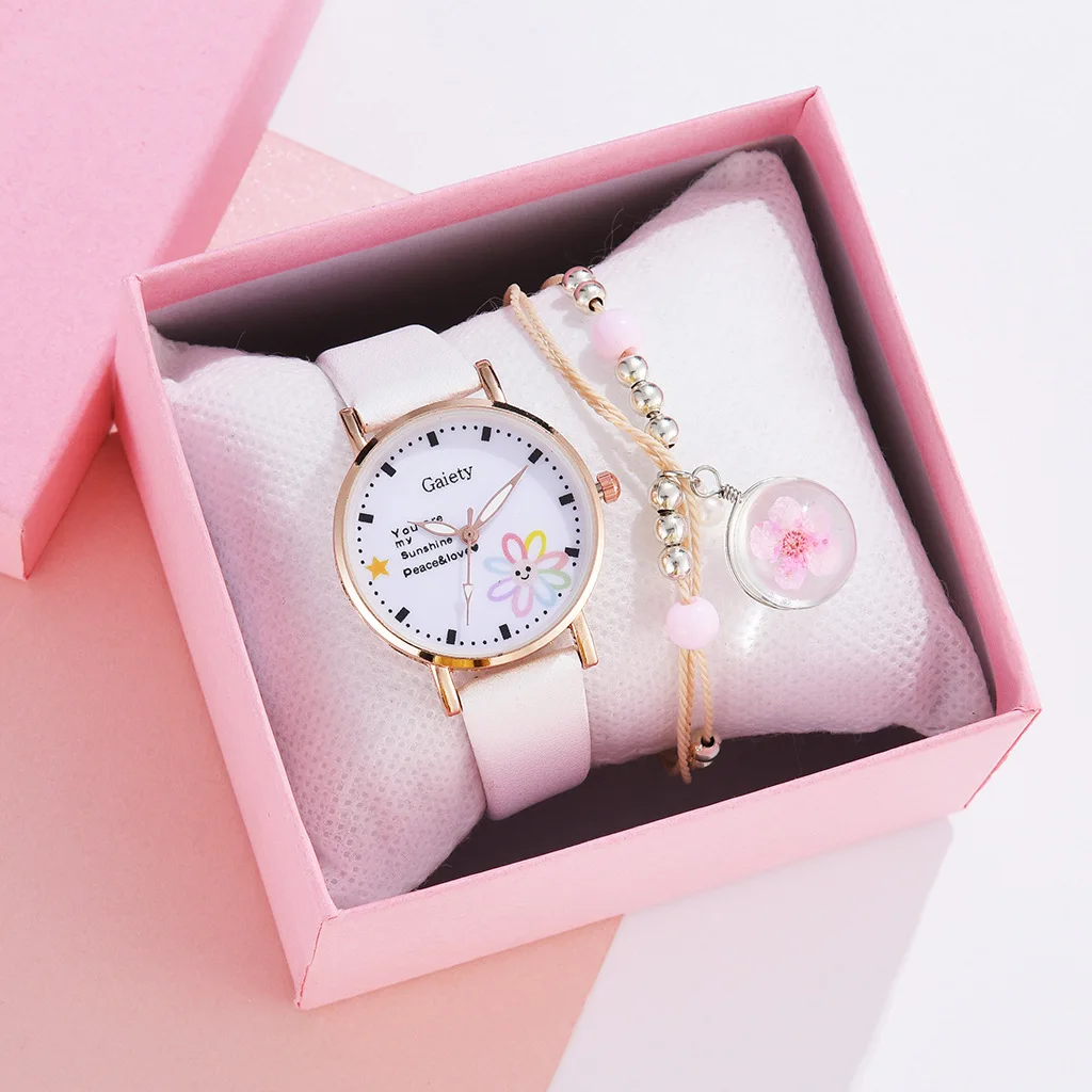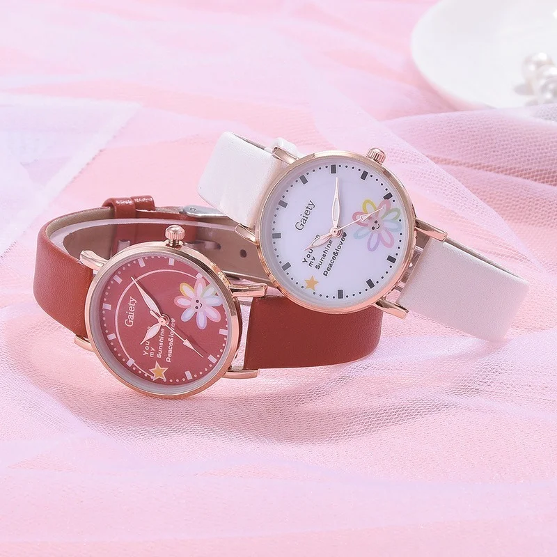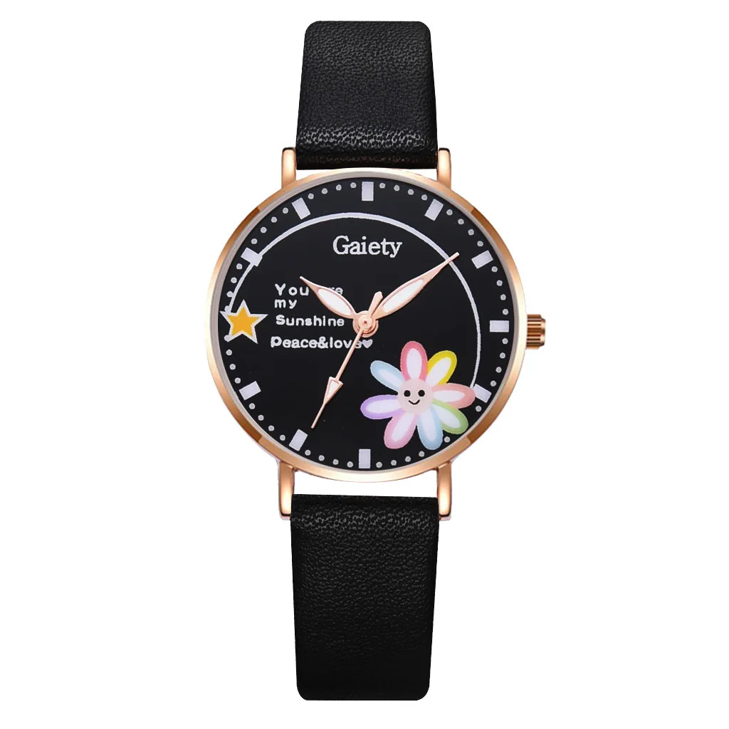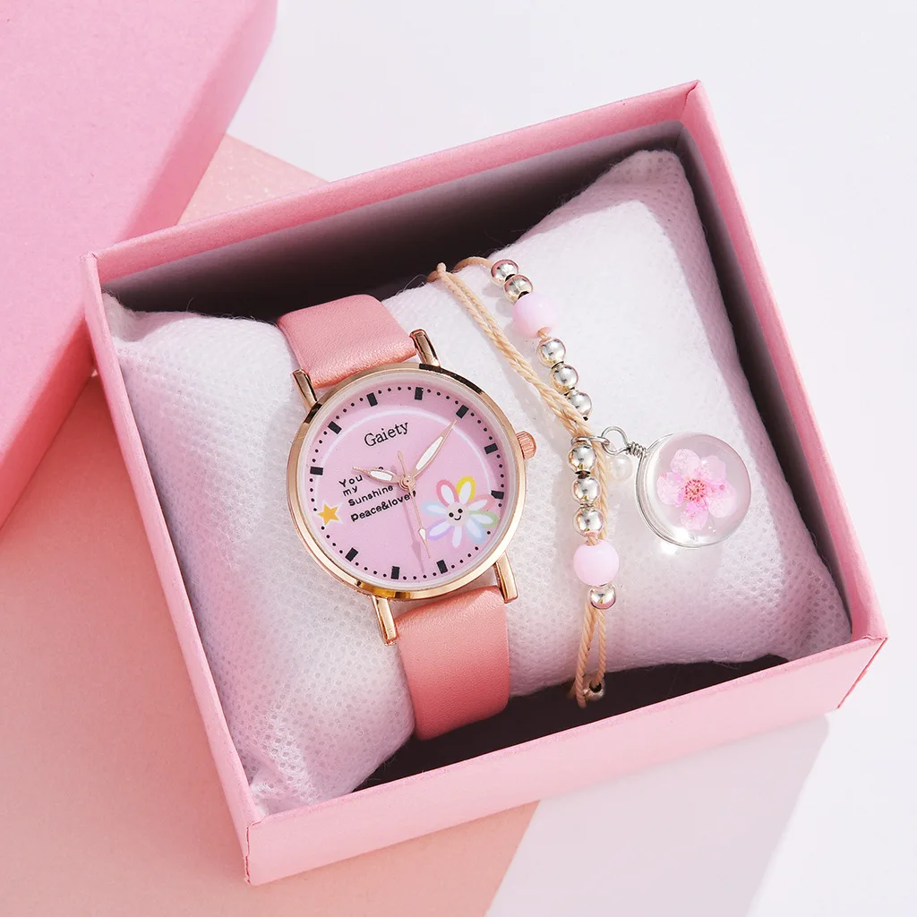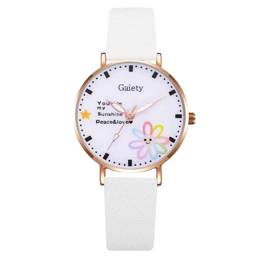 Часы Детские кварцевые аналоговые с кожаным ремешком, милые розовые...