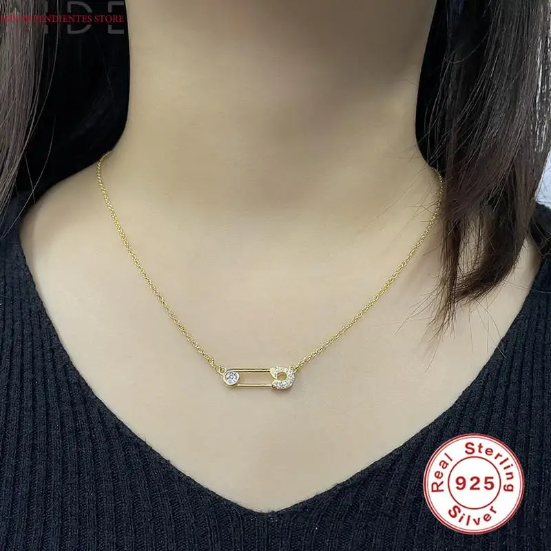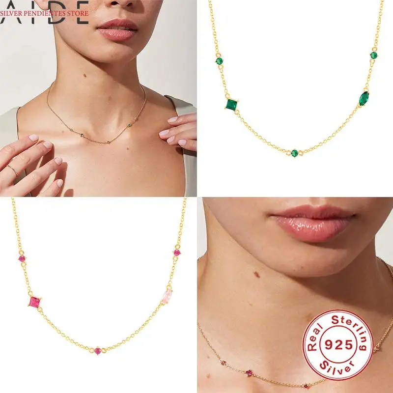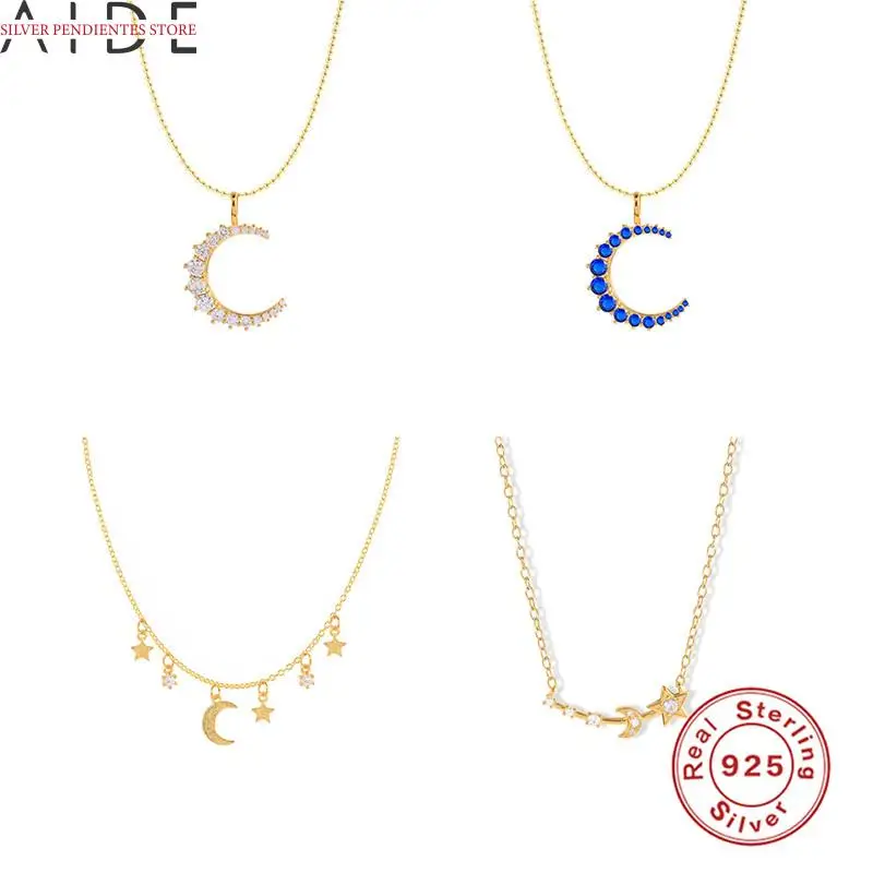 AIDE, серебро 925 пробы, звезда, луна, зажим для бумаги, корона, циркон, женское ключичное ожерелье, Трендовое Золотистое Ожерелье, ювелирное изделие