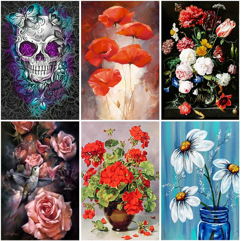 Алмазная картина сделай сам с маками, полноразмерная Мозаика из кру...