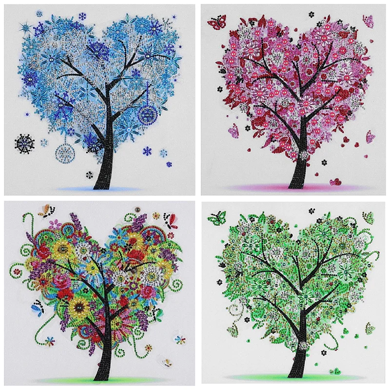 Алмазная 5D картина сделай сам, четыре сезона, вышивка с деревом стразы, мозаика в форме сердца, картина с деревом, художественные изделия, домашний декор для стен, подарки