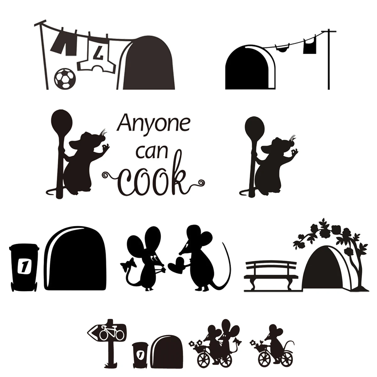 Тема:Забавные наклейки на стену с отверстием для мыши, декор для гостиной, водонепроницаемый ПВХ, украшение для дома