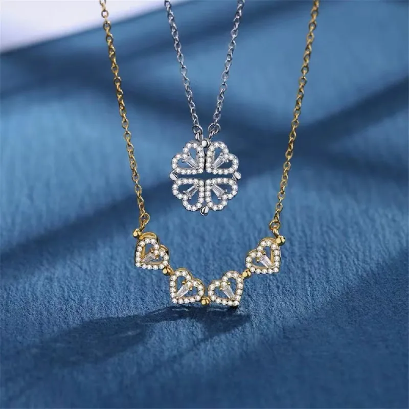 Креативное магнитное складное ожерелье в форме сердца с четырехлист...