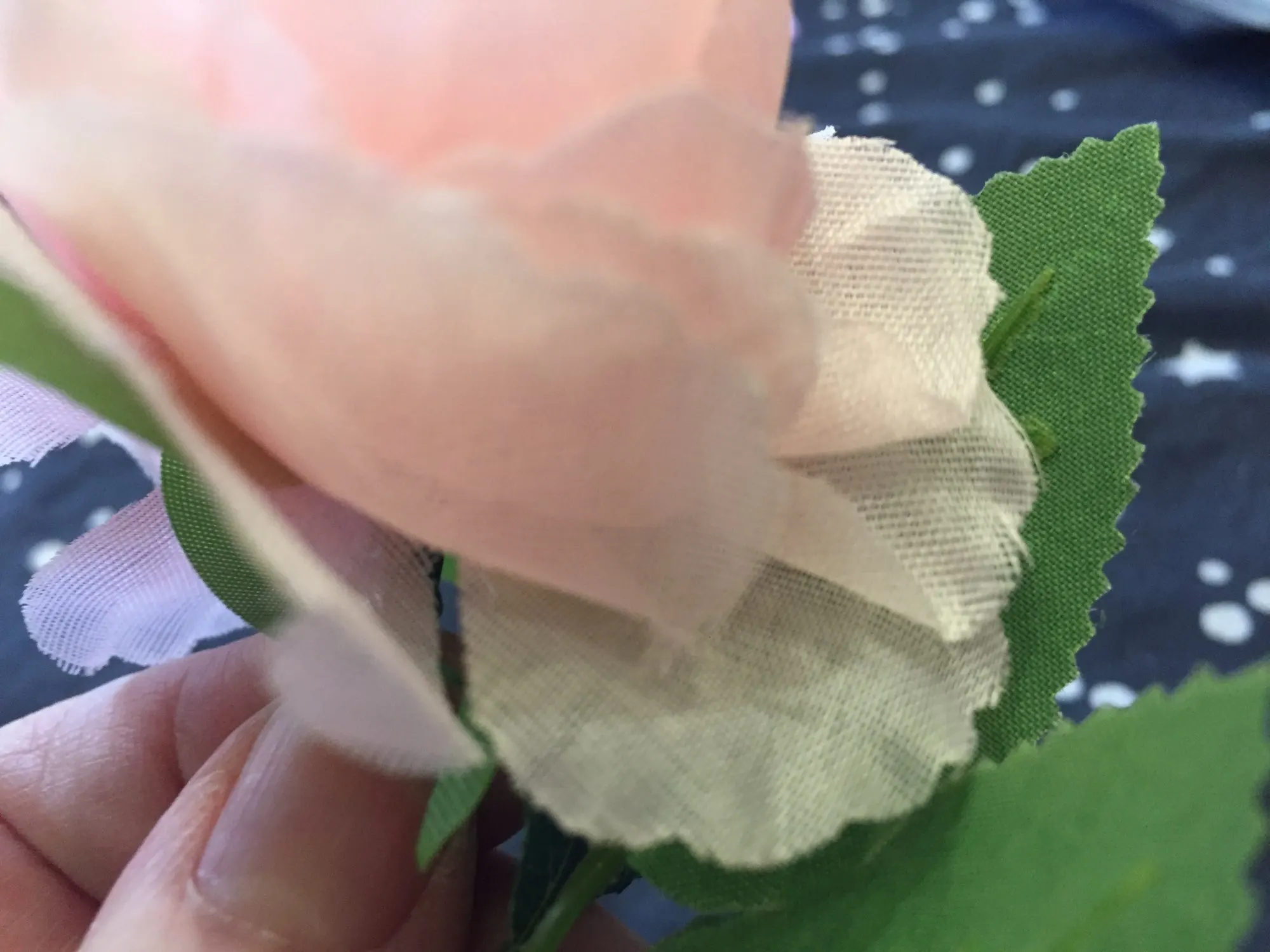 Меньше лепестков и листьев, чем на главной фотографии, листья меньше (чем 3 за ветку), подошва маленькой цветка полностью пластиковая, короче говоря, это не тот же продукт, что и предлагаемый