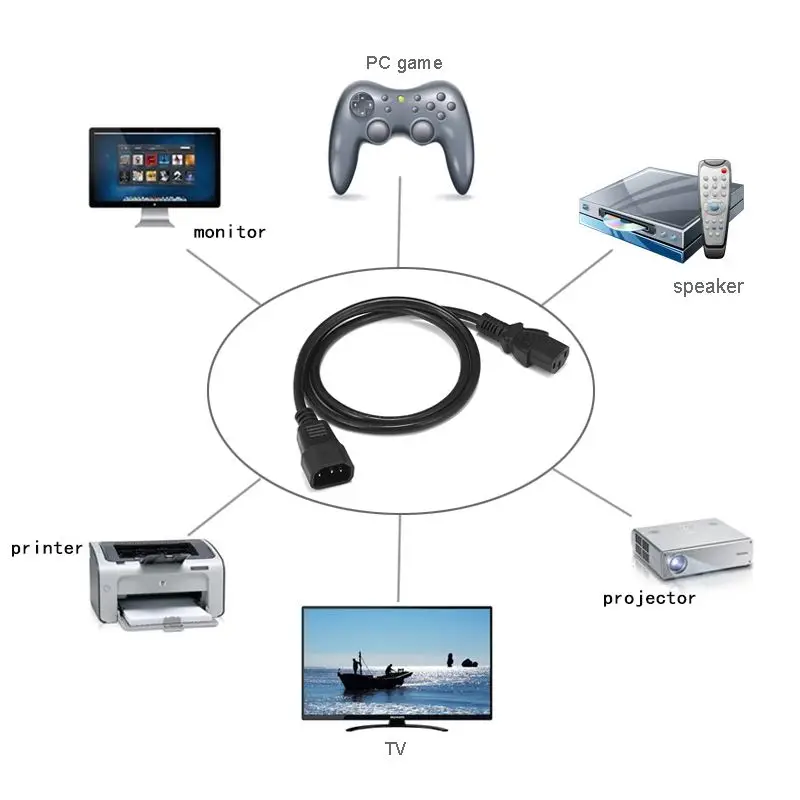100% абсолютно новый C13 C14 удлинитель кабеля питания Проволочный Калибр: 0,75 mm2 x 3 Скорость напряжение/ток: 250V 10A Материал проводника: медь Изоляционный материал: ПВХ Тип наконечника: IEC-320-C14 Тип торца: IEC-320-C13 Длина кабеля (приблизительно): 0,5 м/1 м/1,5 м/1,8 м/3 м/5 м/10 м опциональноПосылка включает в себя: