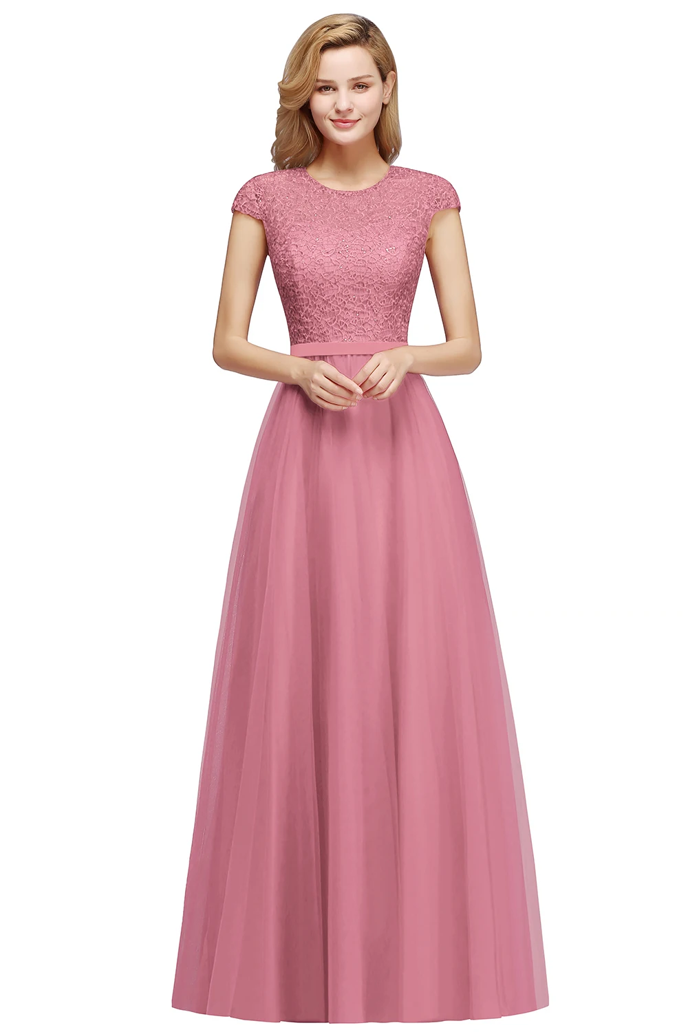 Длинное розовое платье для подружек невесты без рукавов, элегантное свадебное официальное вечернее платье, Тюлевое платье для свадьбы, 2021