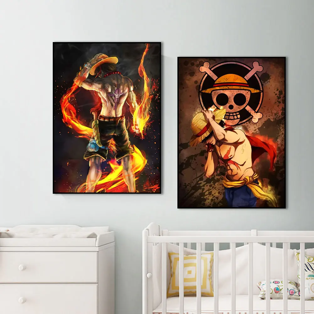 Аниме цельный плакат Ace соломенная шляпа Луффи японская анимация абстрактная Настенная картина на холсте картина для комнаты украшение для дома