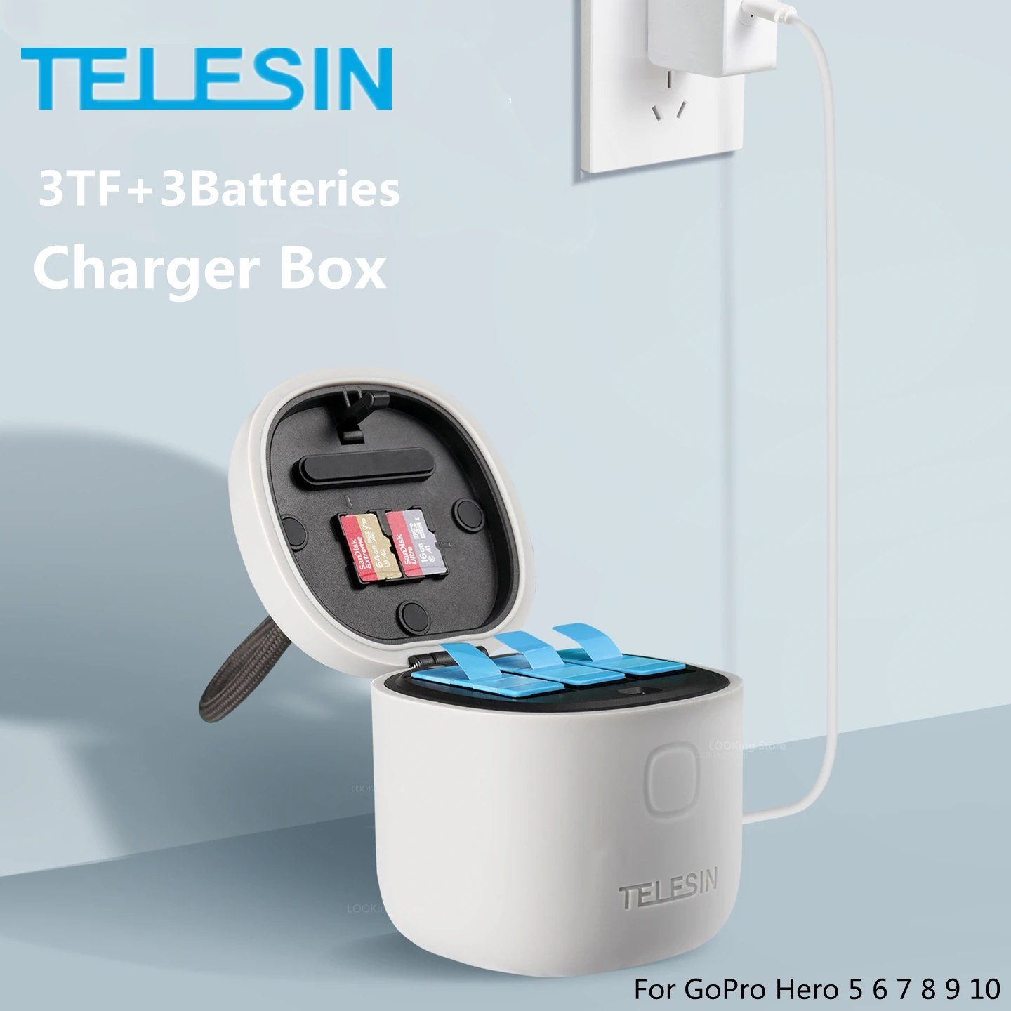 Зарядное устройство TELESIN, зарядное устройство с 3 слотами для GoPro Hero 5 6 7 8 9 10