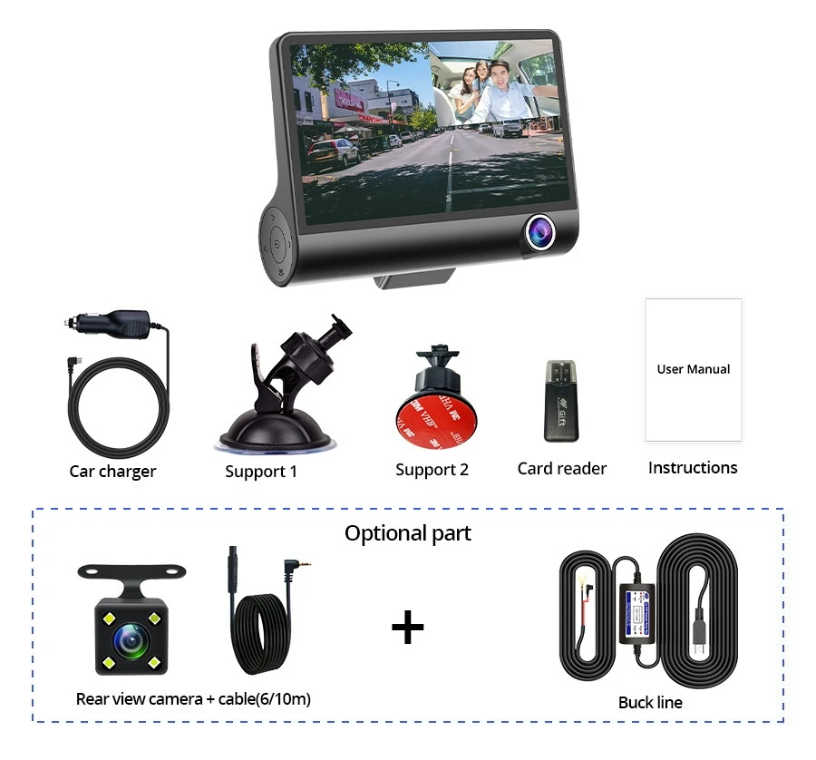Автомобильный видеорегистратор Xiomi, 3 камеры с объективом 4,0 дюйма, двойной объектив, запасная камера заднего вида, видеорегистратор, авторегистратор, видеорегистраторы, видеорегистратор