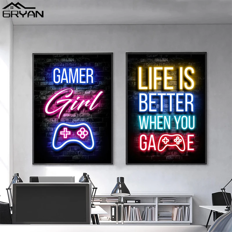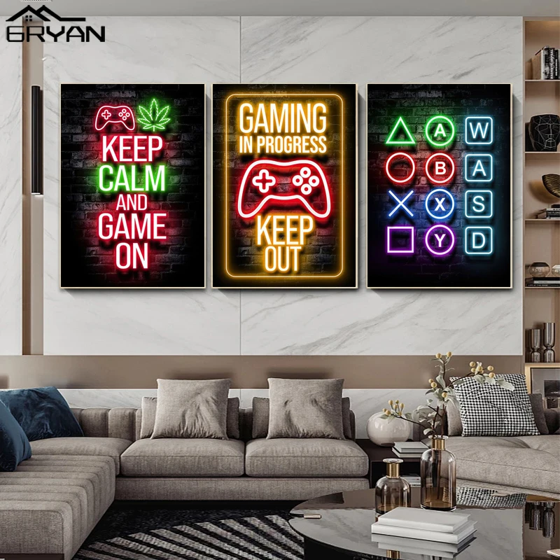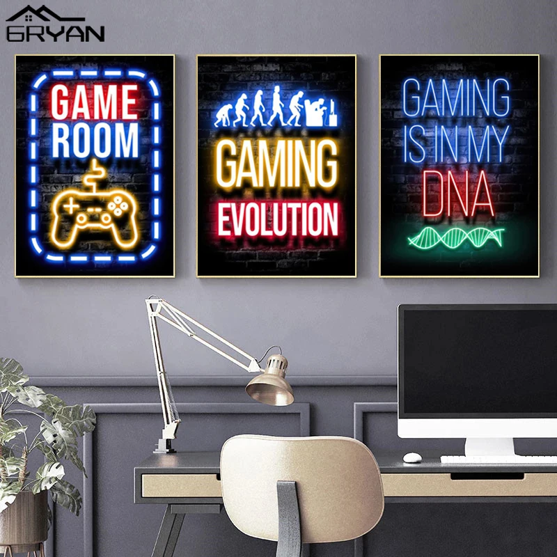 Компьютерный ноутбук игровая комната холст постер видео игра игровая комната печать картина для мальчиков девочек любителей картина Спальня украшение