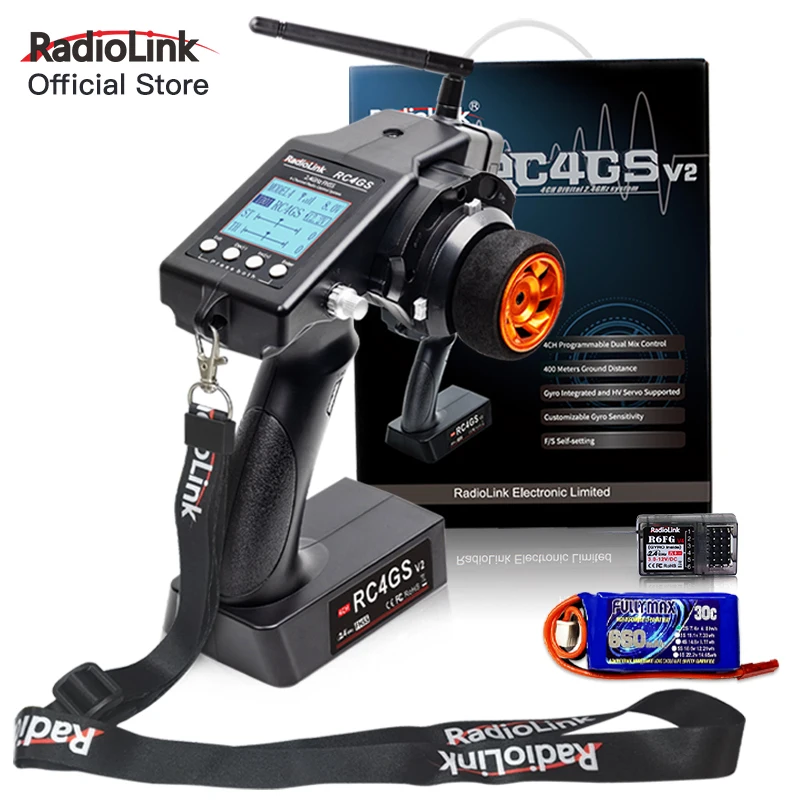 Пульт дистанционного управления RadioLink RC6GS V2 RC4GS V2 2,4G передатчик с 2S Lipo батареей 660mah R7FG R6FG приемник для радиоуправляемого автомобиля лодки
