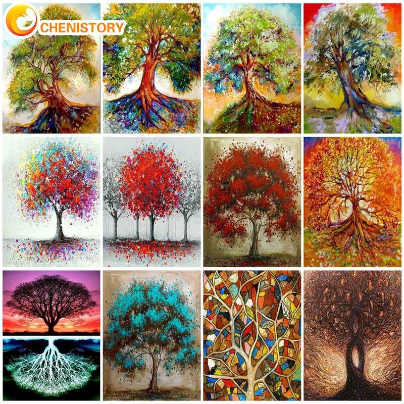 Пейзаж дерево Diy живопись маслом по номерам комплект Современные н...