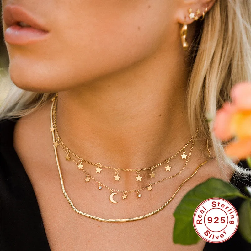 Женское Ожерелье BOAKO Plata De Ley 925, колье со звездами и луной,...
