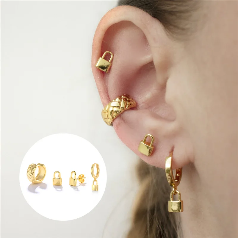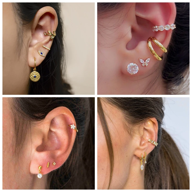 Серьги-гвоздики женские креативные с фиксацией глаз и листьями