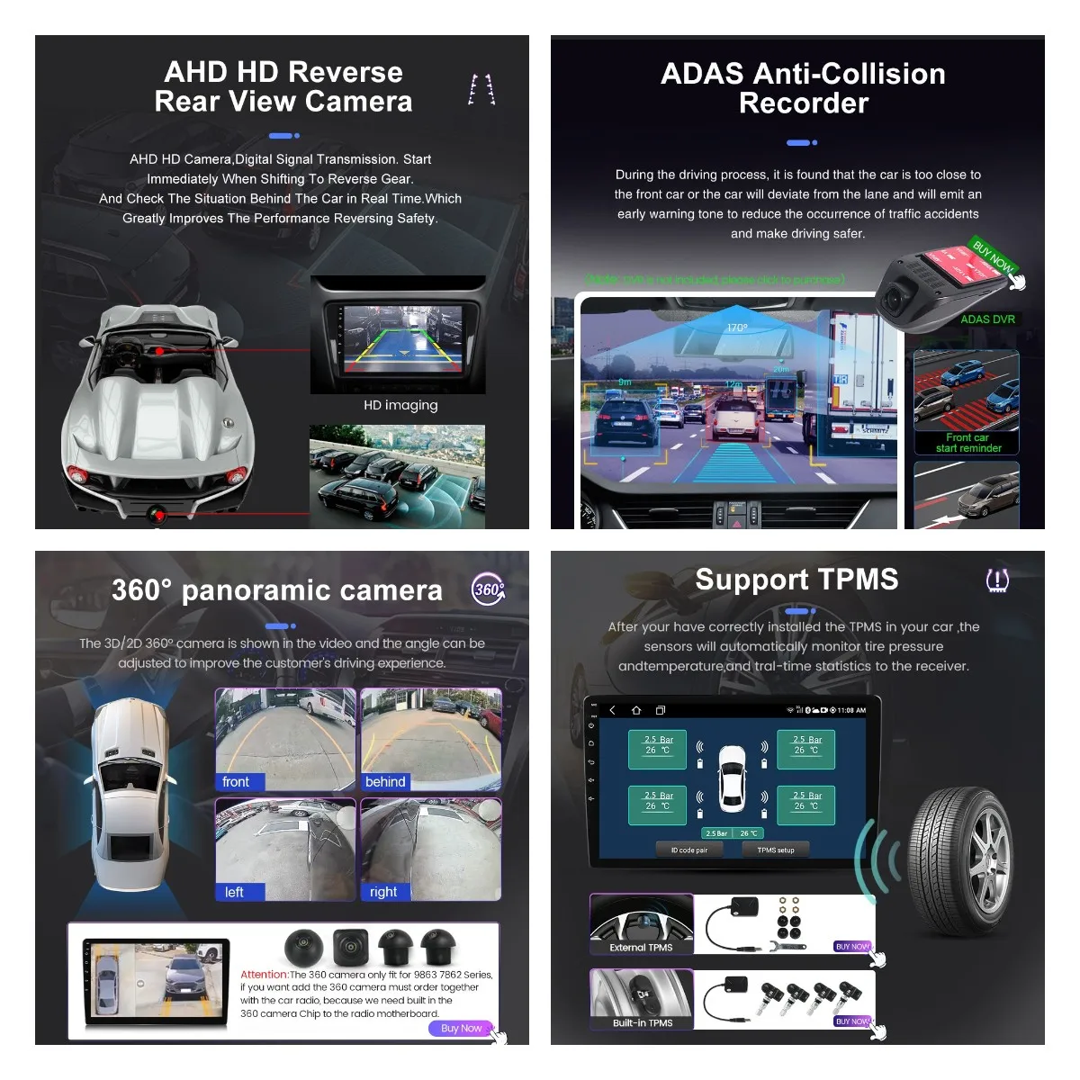 > Поддержка DAB + / TPMS / OBDII / 360 ° панорамная камера/TMPS