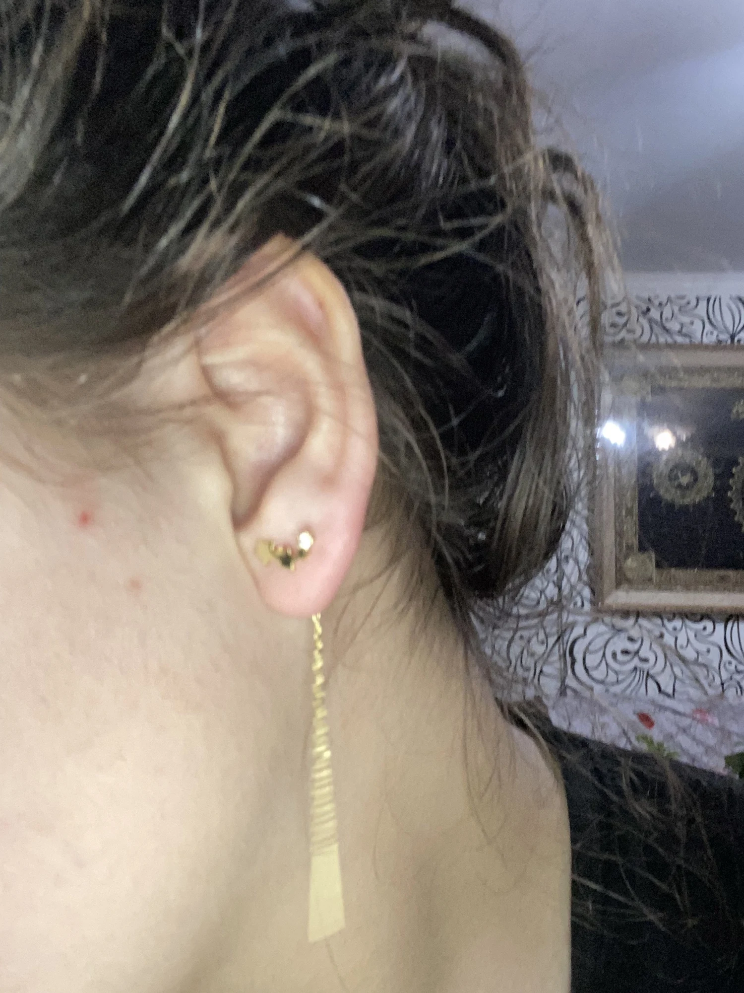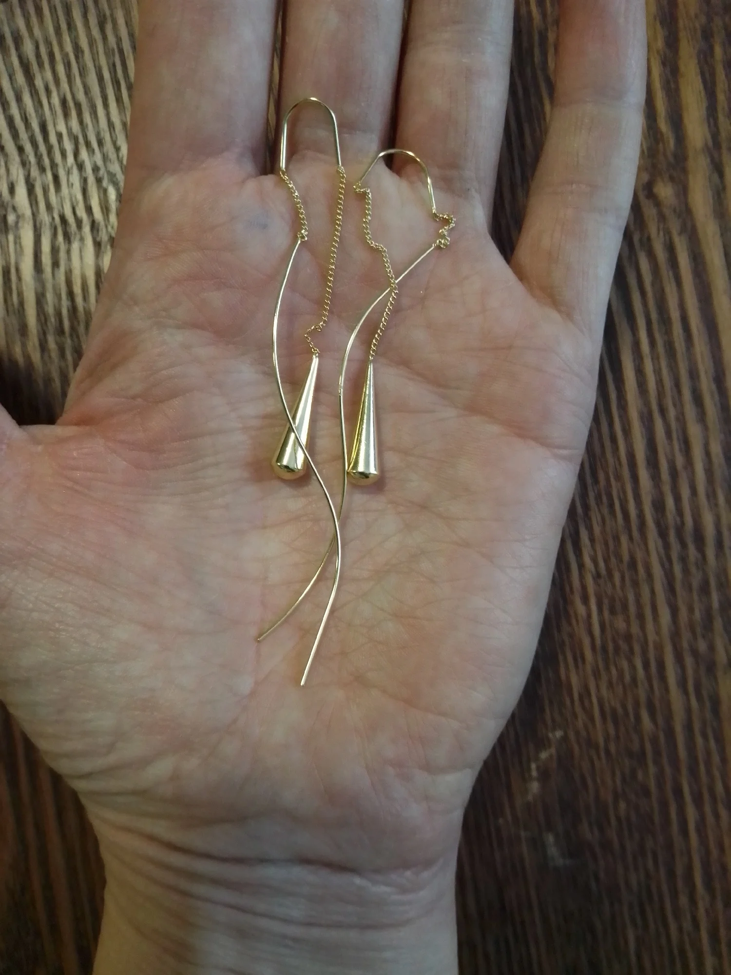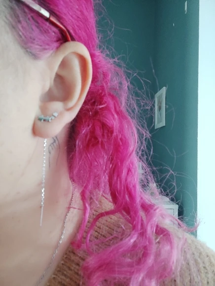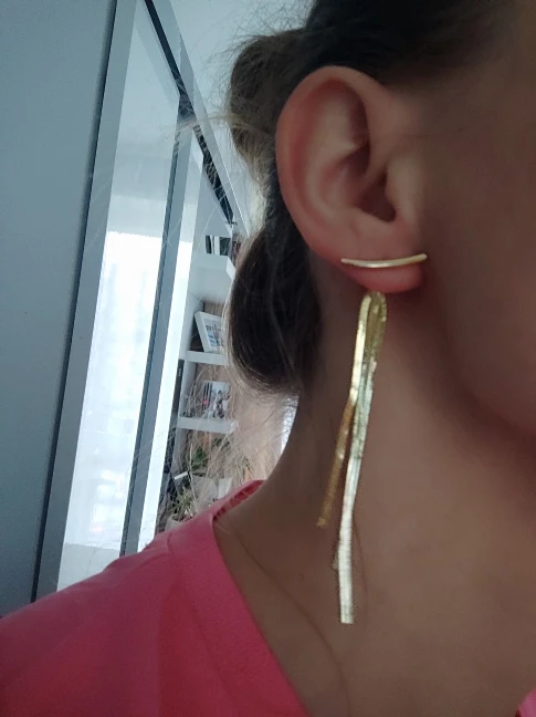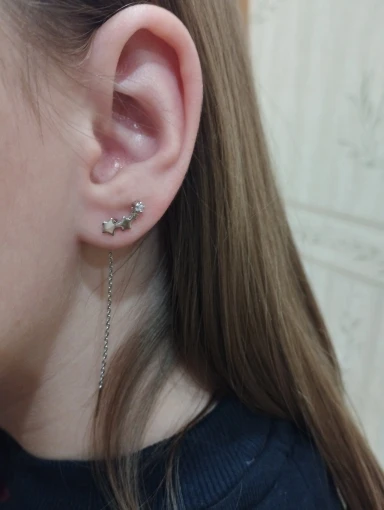 Самые теперь мои любимые серёжки, ношу во вторых проколах не снимая. Продавцу спасибо!