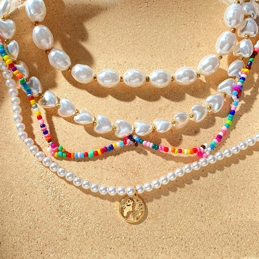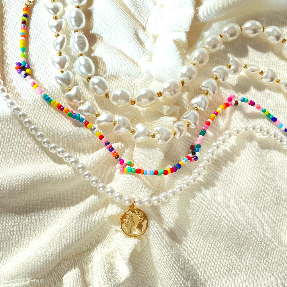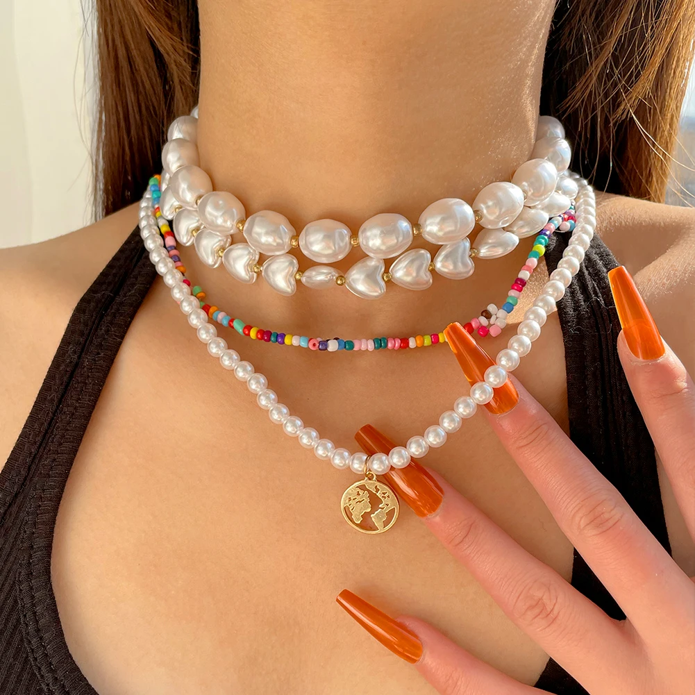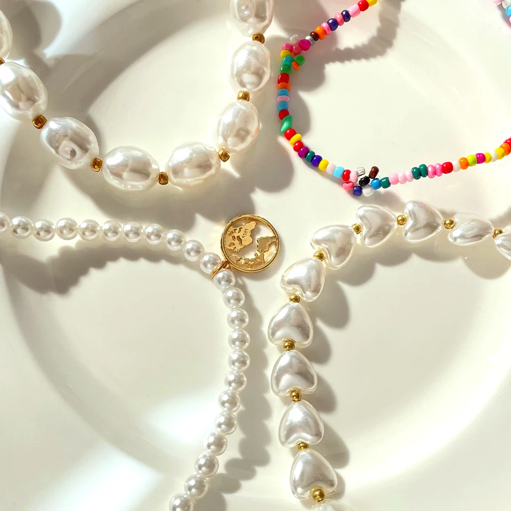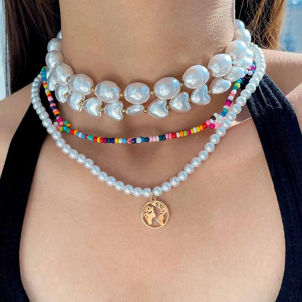 Ожерелье-чокер женское с жемчугом неправильной формы, простой модный ошейник с овальным жемчугом в стиле барокко, с подвеской в виде карты, цепочка с бусинами, ювелирное изделие в стиле бохо