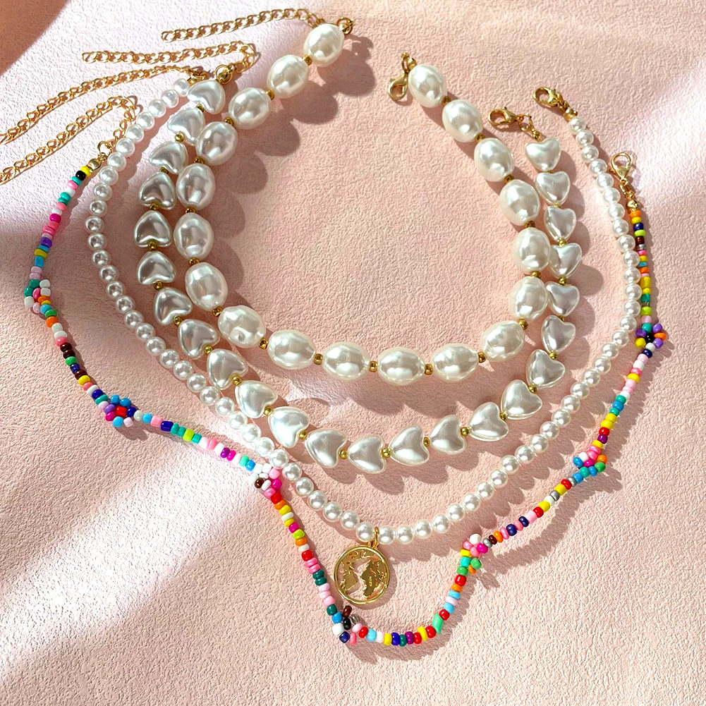 Женское Ожерелье с жемчугом, ожерелье в богемном стиле с буквами се...