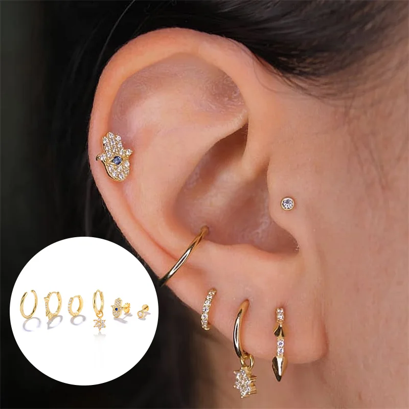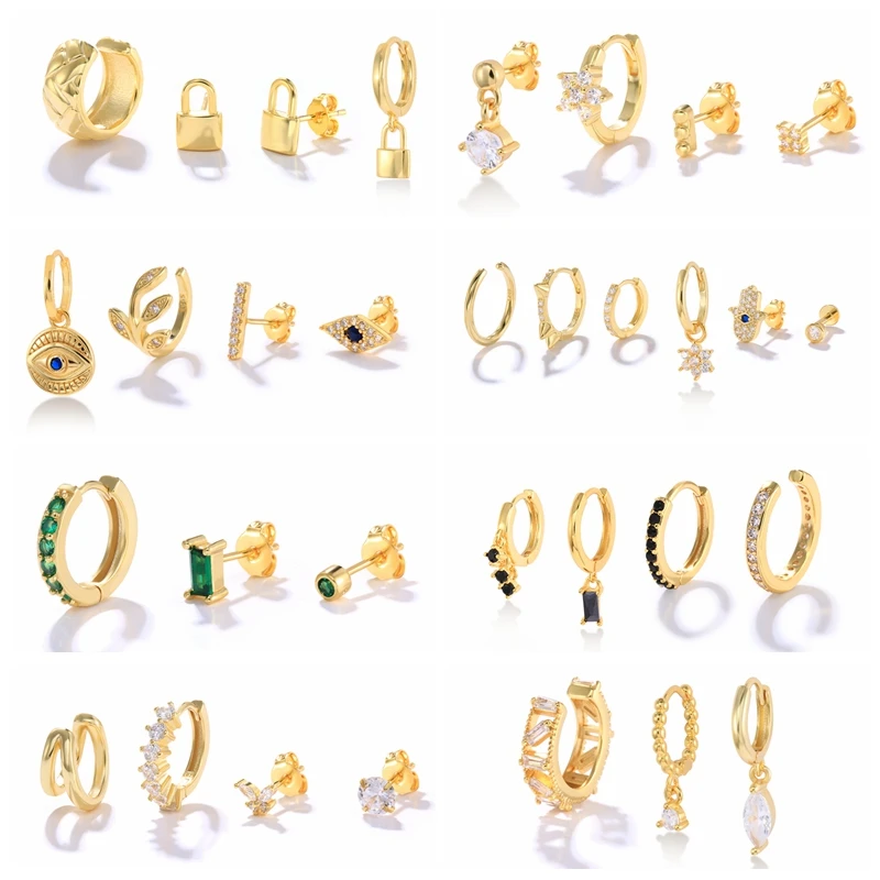 Женские серьги-гвоздики BOAKO, 6 шт., 18 К, золотистого цвета, серьги-гвоздики со сглаза для свадьбы, ювелирные изделия, аксессуары