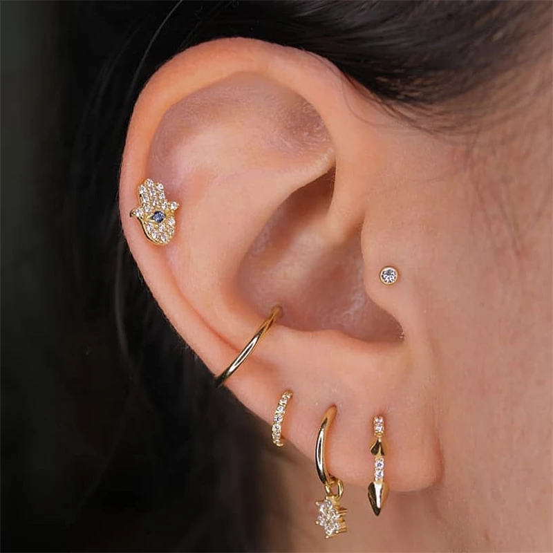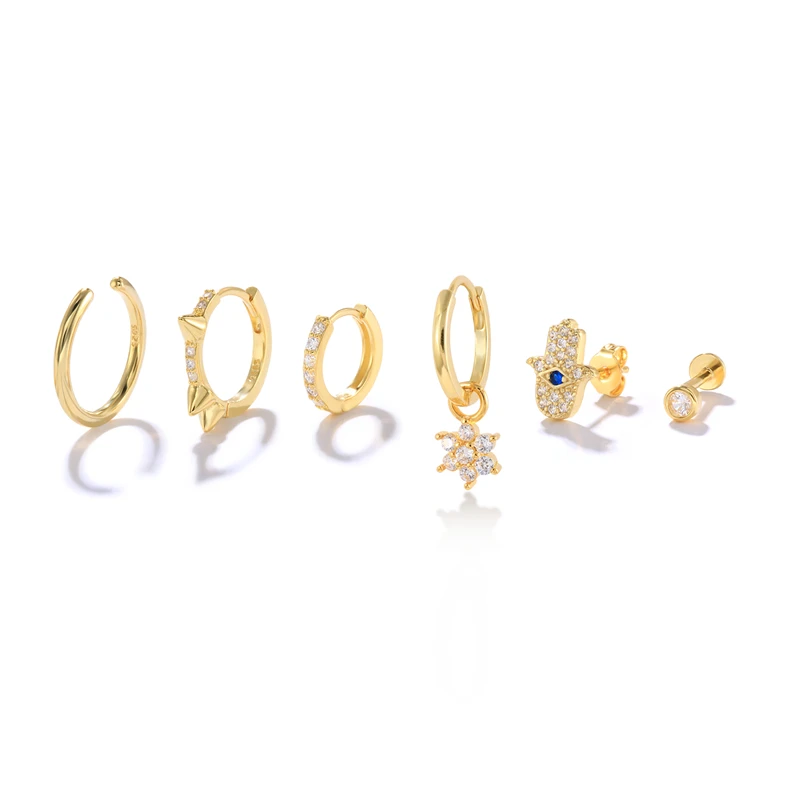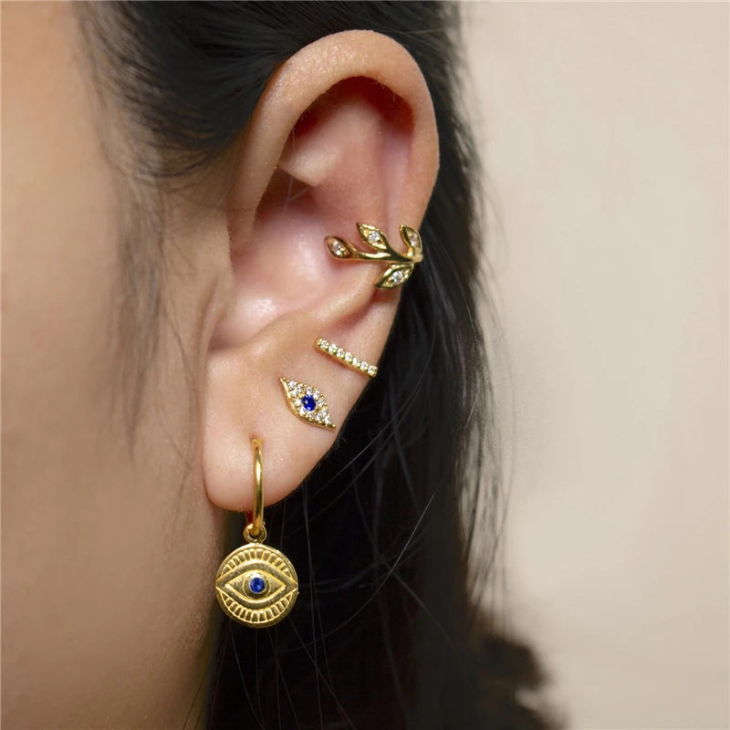 Серьги-гвоздики женские из 18-каратного золота с эффектом сглаза, 6 шт.