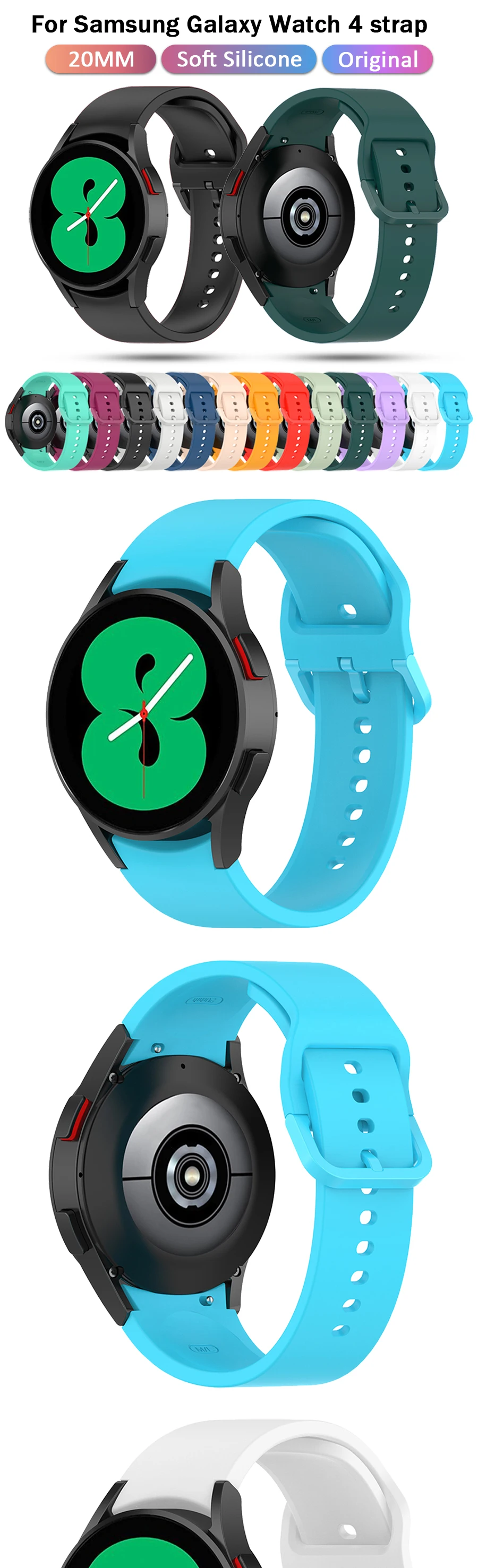 Ремешок силиконовый 20 мм для Samsung Galaxy Watch 4 Classic 42 мм 46 мм, браслет для наручных часов Galaxy Watch 4 40 мм 44 мм