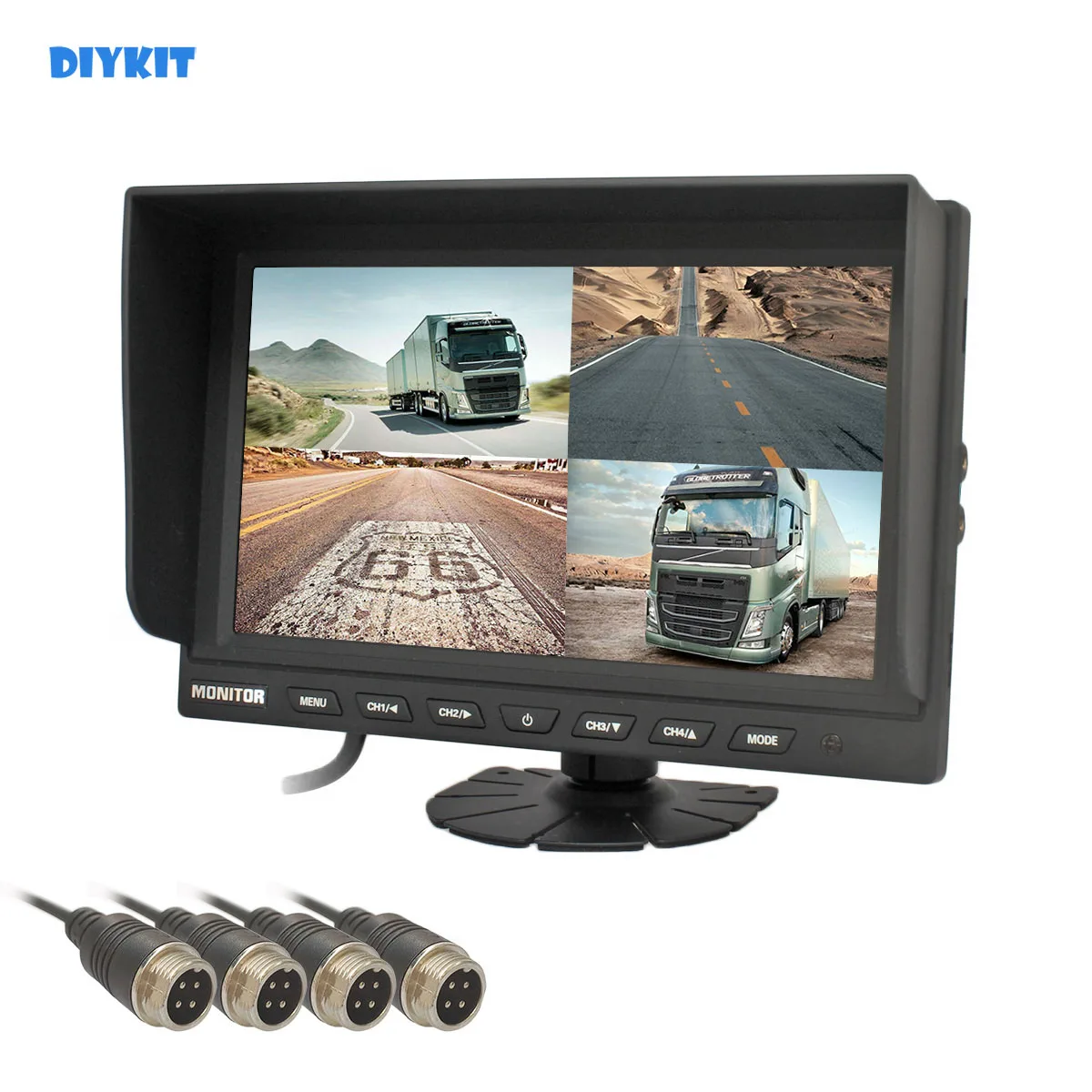 DIYKIT 4CH 4PIN DC12V-24V 9 "4 разделенный четырехъядерный ЖК-экран, дисплей, цвет товара для автомобиля, грузовика, автобуса, камера заднего вида