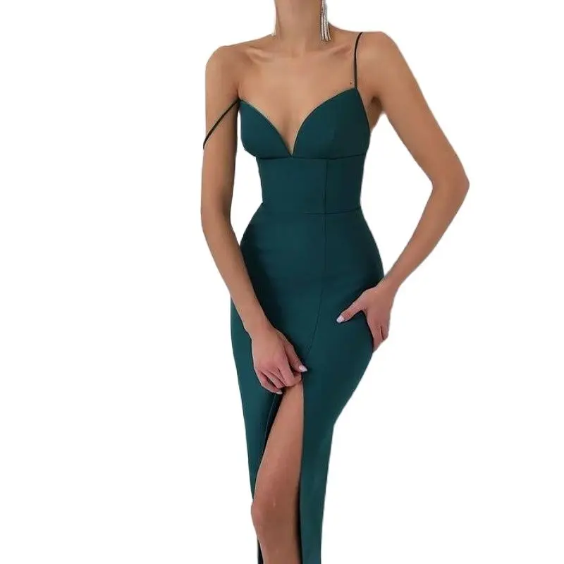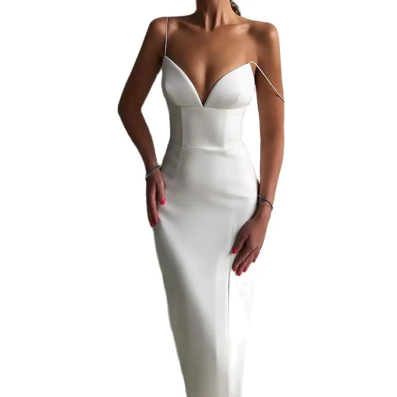 Обтягивающее однотонное женское платье на бретелях-спагетти viнастр...