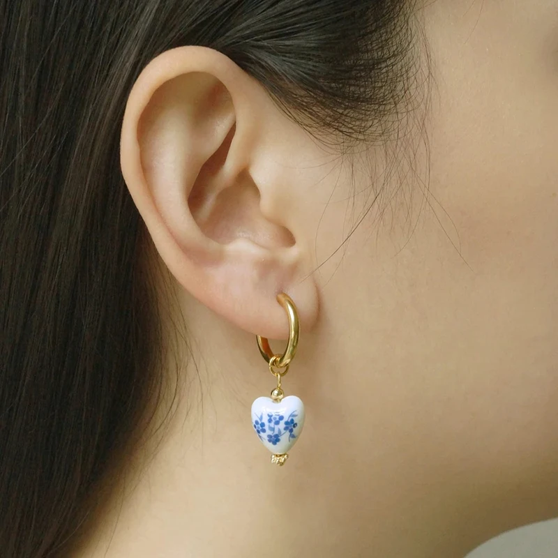 Серьги-гвоздики CANNER, китайские элементы, сине-белые фарфоровые с...