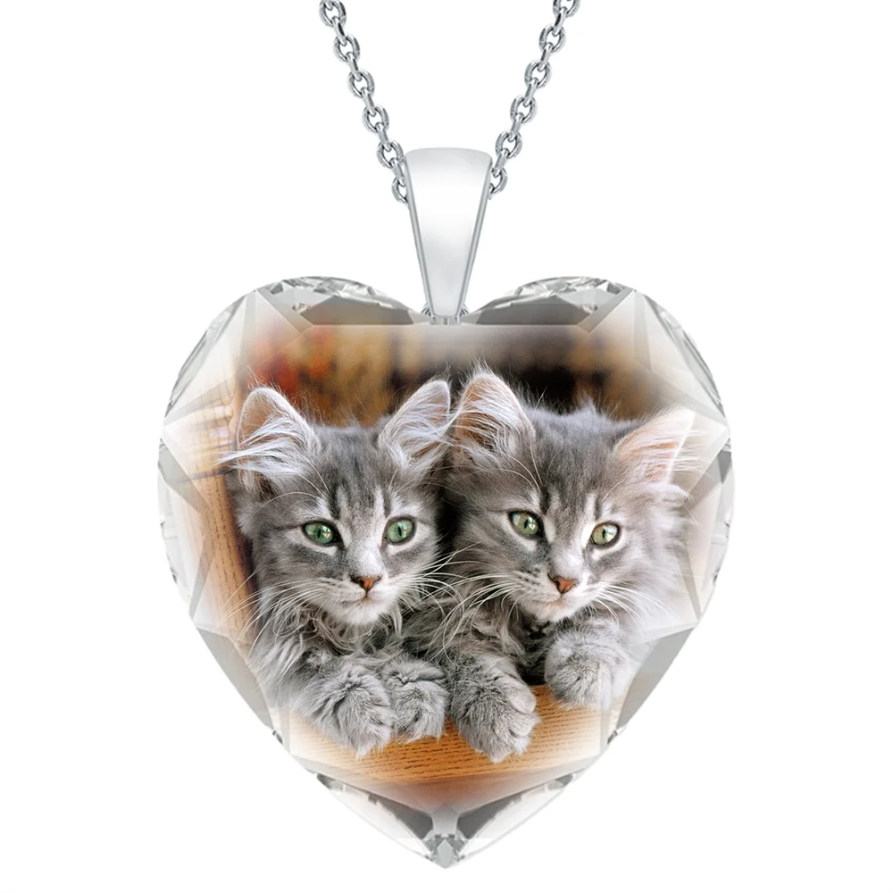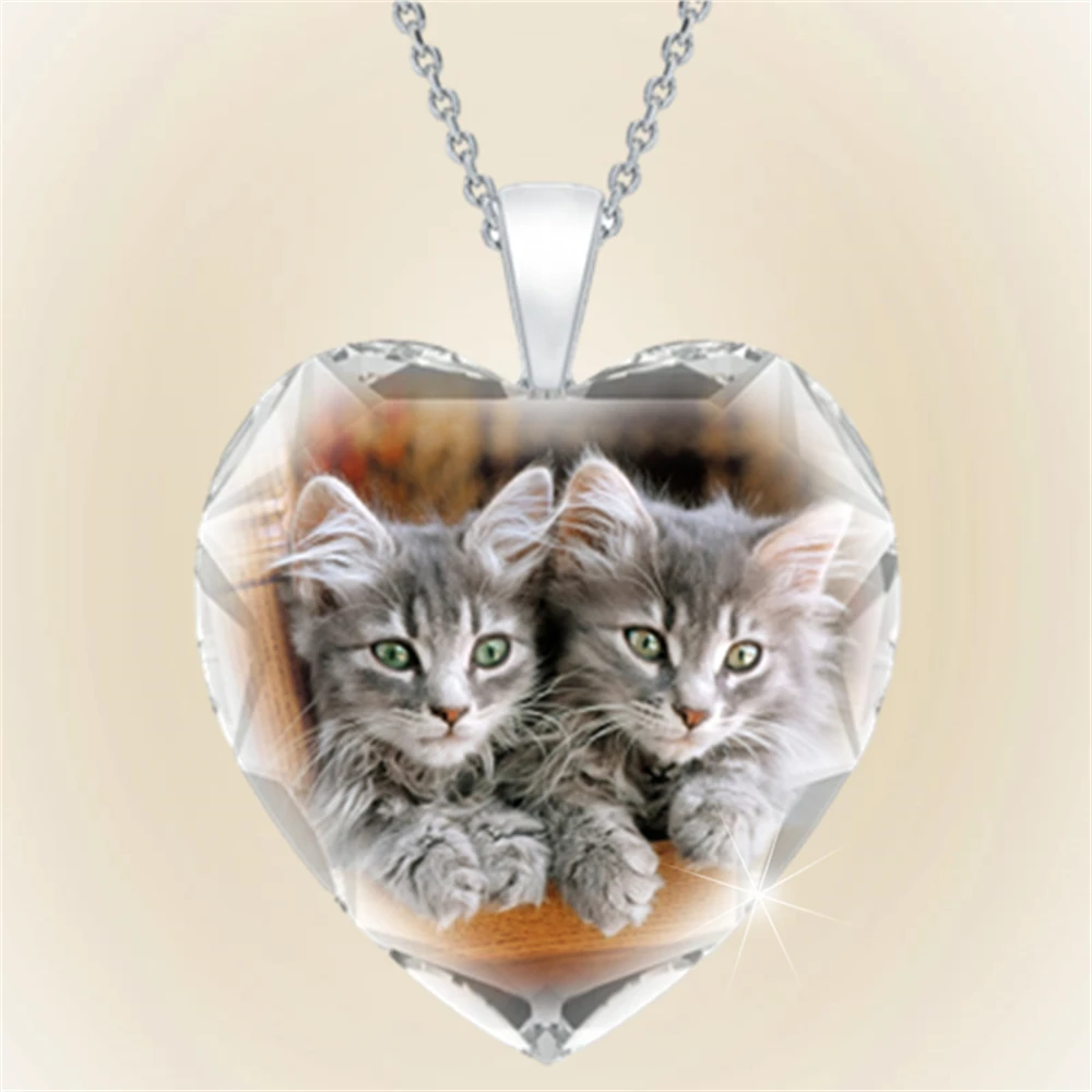 Милый мультяшный котенок в форме сердца ожерелье с подвеской из кри...