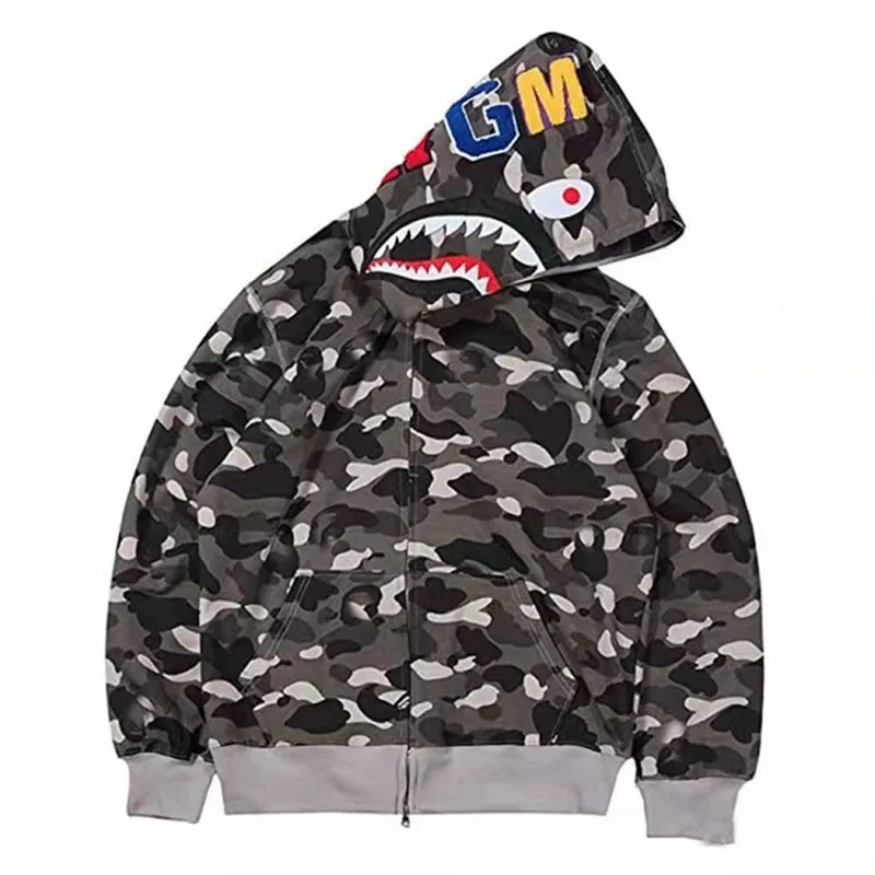 Новая классическая камуфляжная Толстовка для мужчин и женщин Bape Shark, Высококачественная спортивная куртка на молнии в стиле хип-хоп Harajuku Plus 4XL
