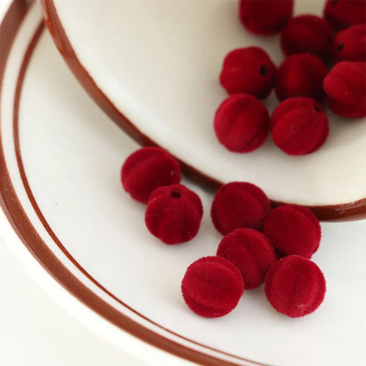 20 шт. 8 мм акриловые флокированные винно-красные бусины для волос, сережки, аксессуары, материалы для изготовления ювелирных изделий