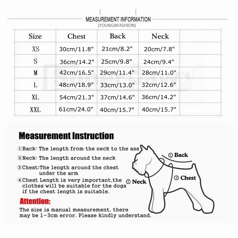 2. Для двух ног, пожалуйста, обратите внимание на обхват груди, и для четырех ног, должны соответствовать обхвату груди и длине спины.